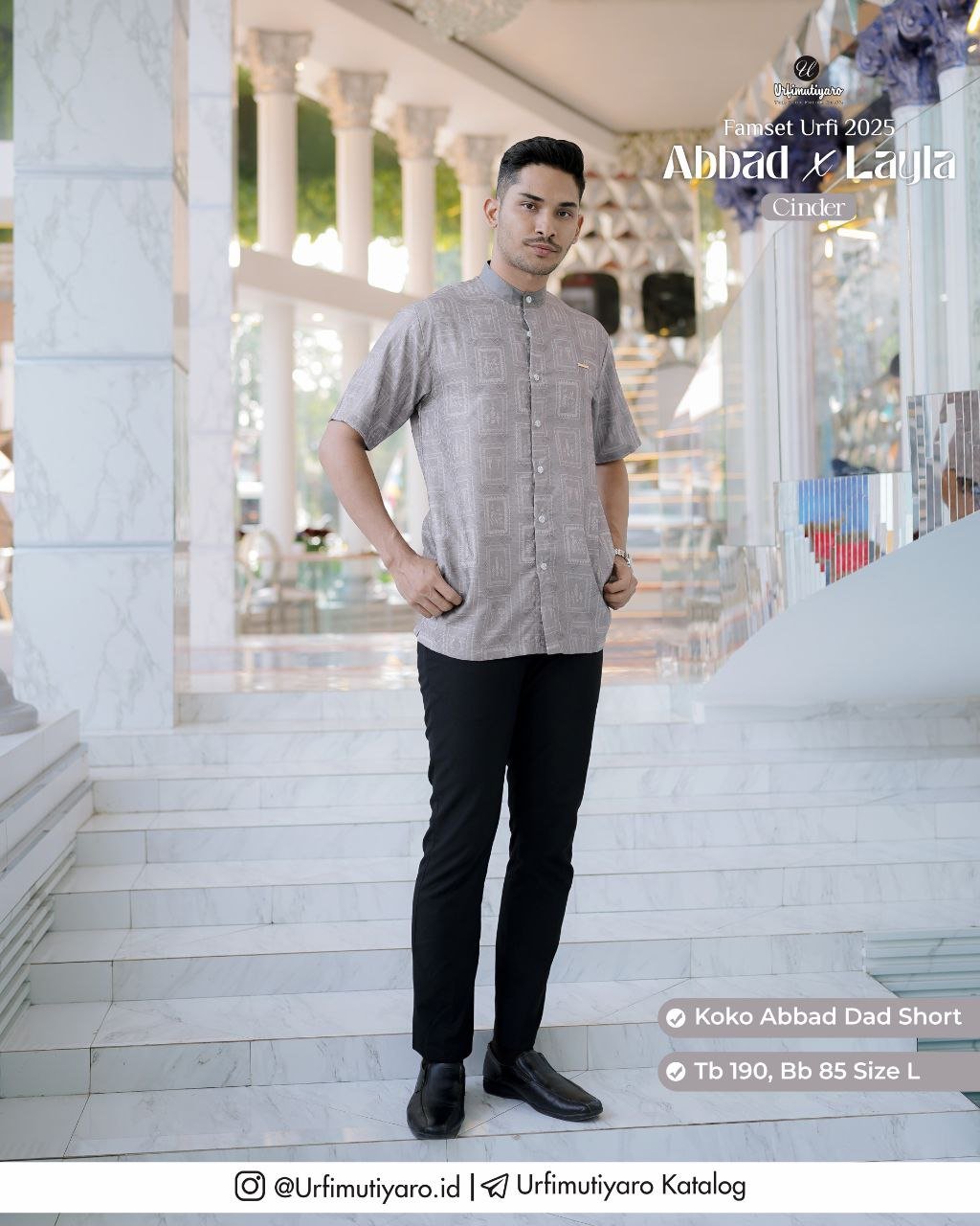 Koko Abbad DAD dan LITTLE didesain dengan model yang sama dengan desain cutting basic, sehingga cocok untuk semua postur badan pria dan anak laki-laki, baik yang perutnya rata maupun perut khas bapak-bapak.