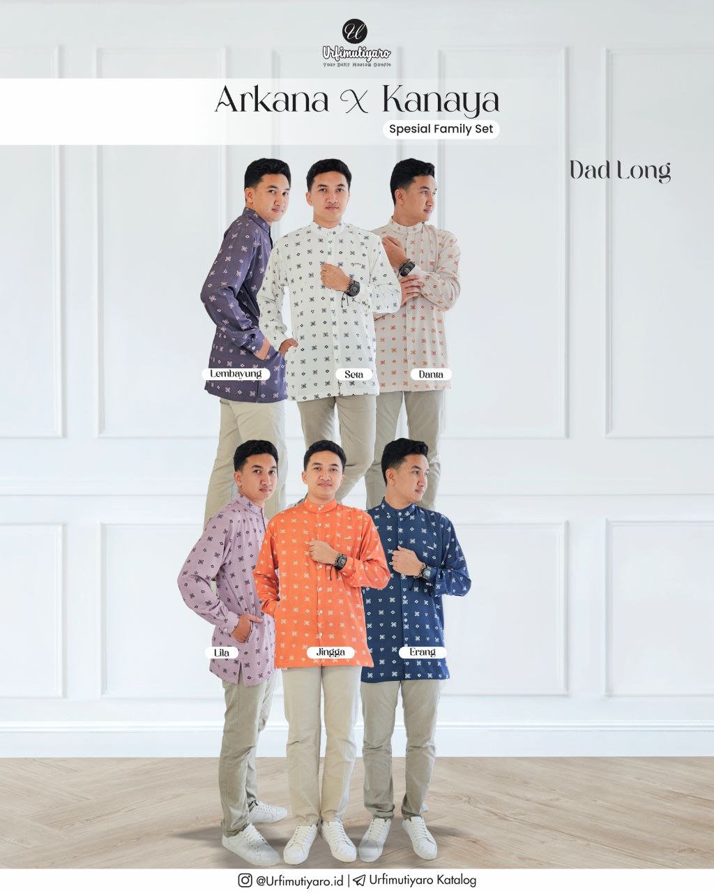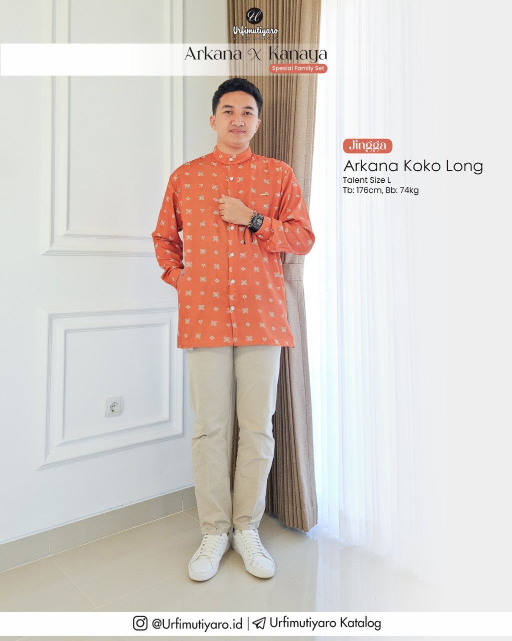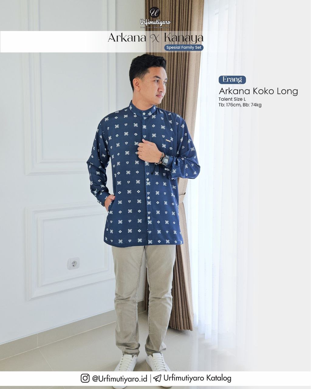 Koko Arkana DAD dan LITTLE didesain dengan model yang sama dengan desain cutting basic, sehingga cocok untuk semua postur badan pria dan anak laki-laki, baik yang perutnya rata maupun perut gendut.