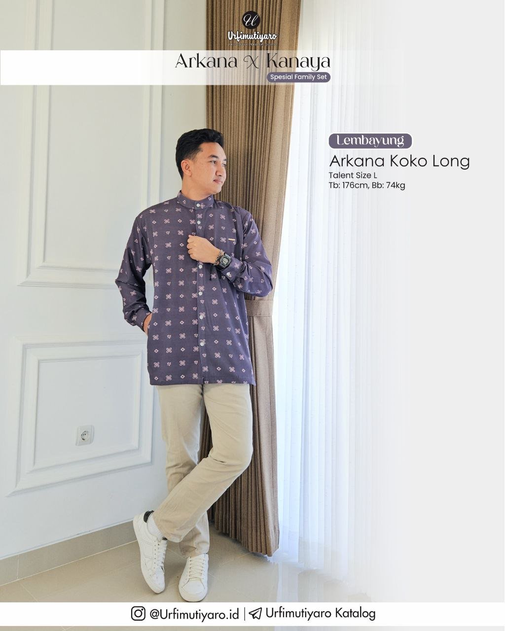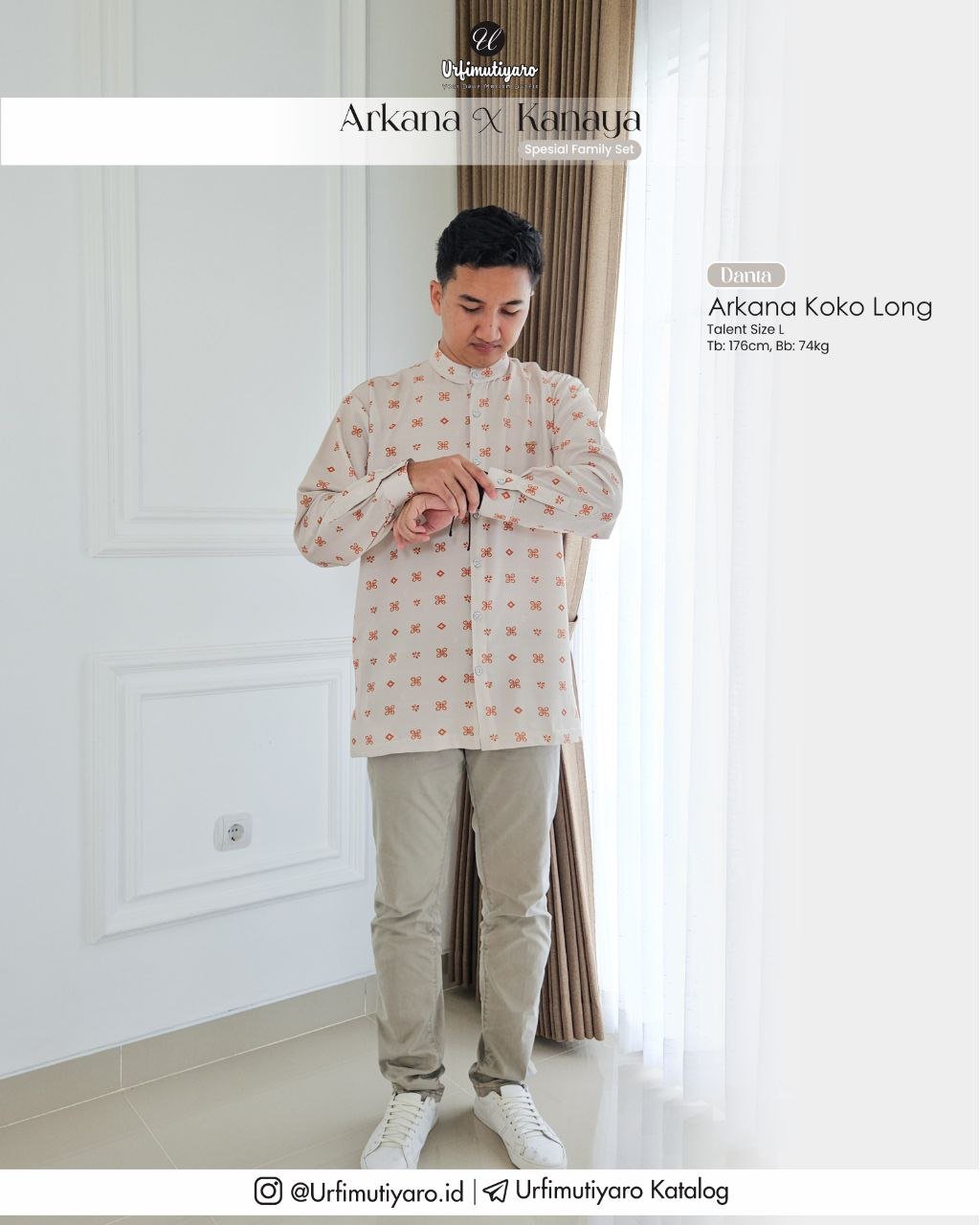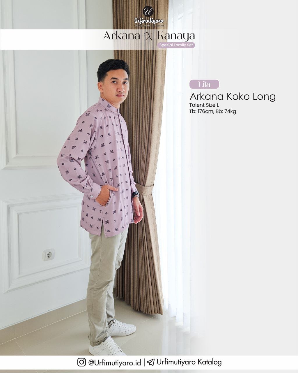 Seperti material pada series Kanaya, Arkana juga menggunakan material HAGIA DELUXE, dengan karakter bahan yang ringan, flowy, dan tidak mudah kusut, yang mana material ini dapat membuat koko Arkana terlihat firm dan gagah saat dikenakan.