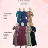 Cassy Skirt, Tunik dan Dress menggunakan material TAFETTA, merupakan jenis kain twist yang dipakai untuk family set Arfa Raya 2024. Handfeel material ini lembut, halus, dan jatuh. Gramasi material tafetta ini tebal & tidak menerawang.