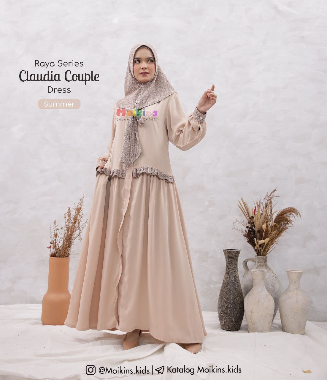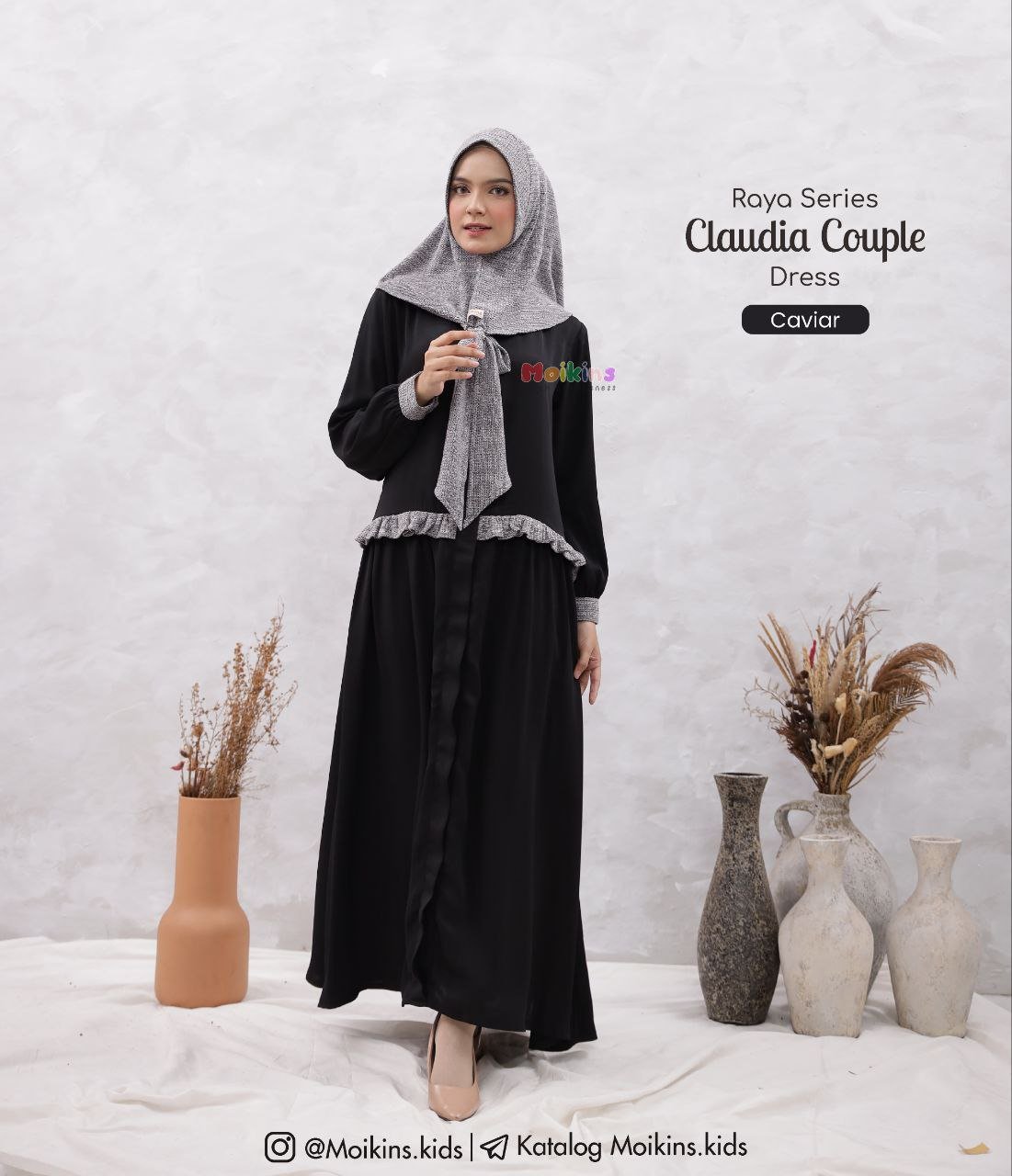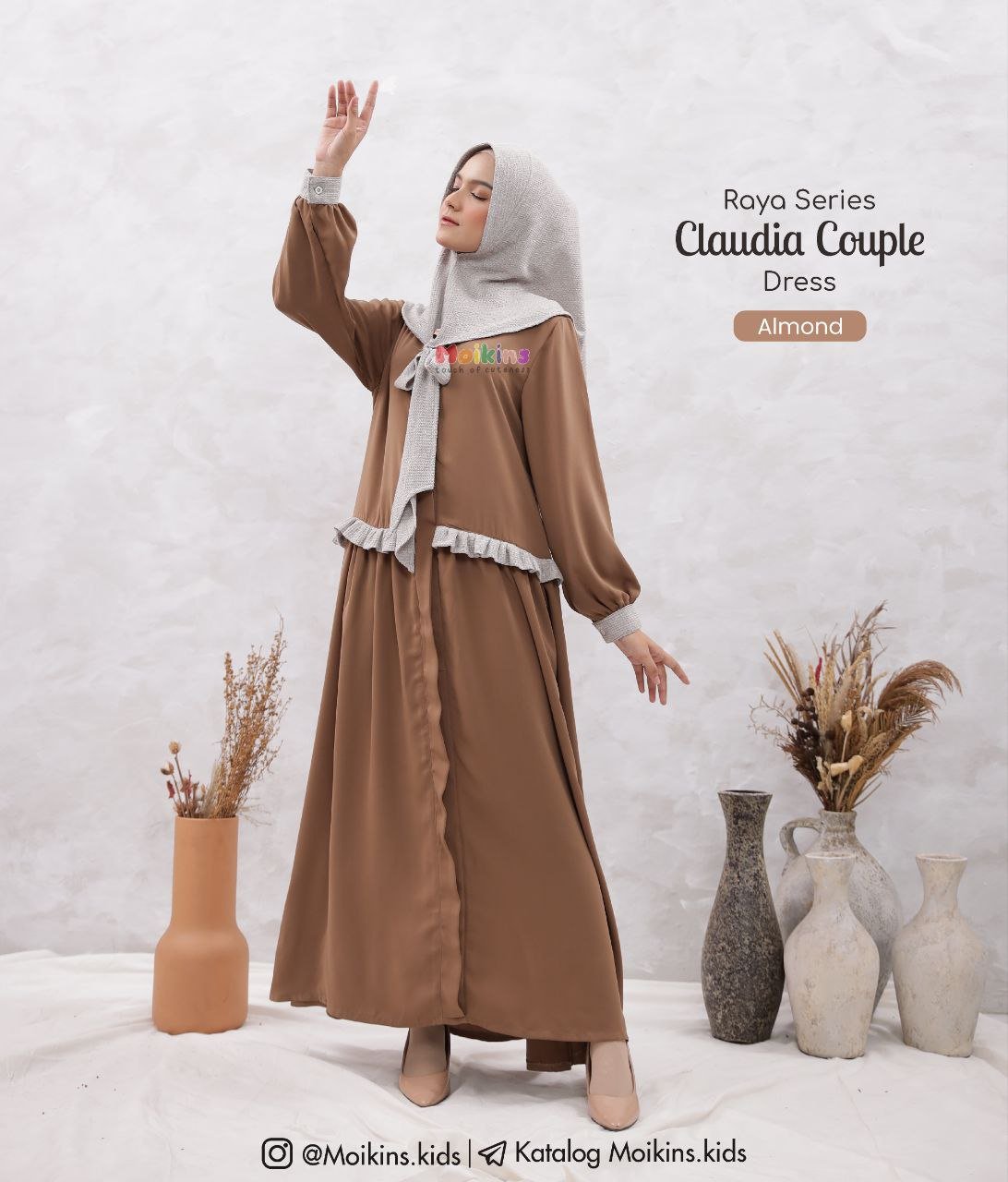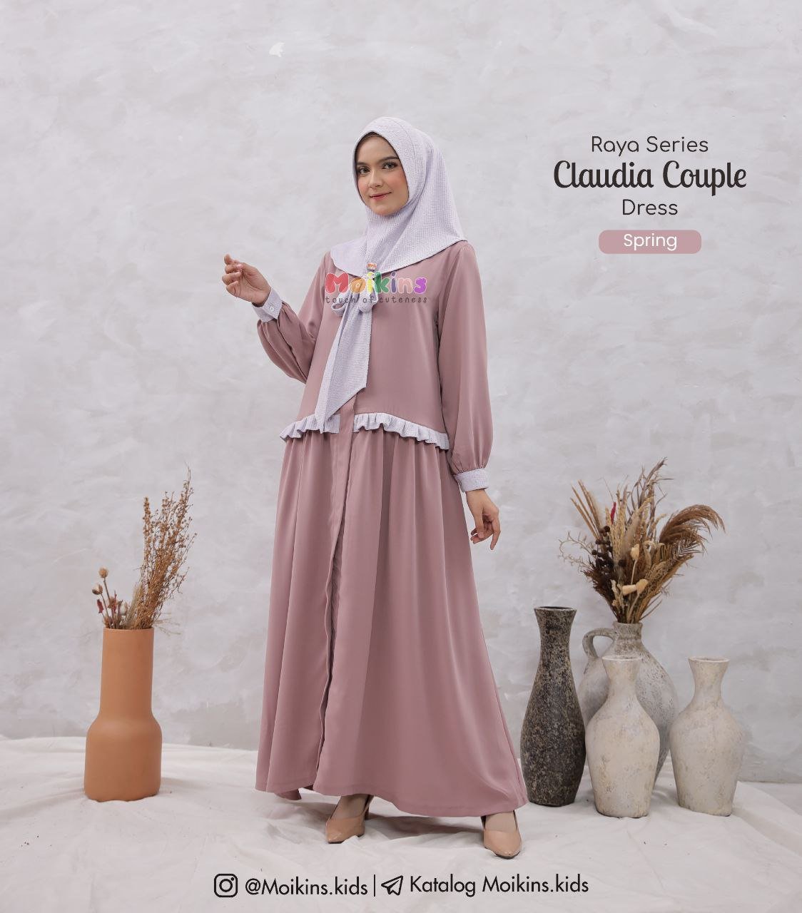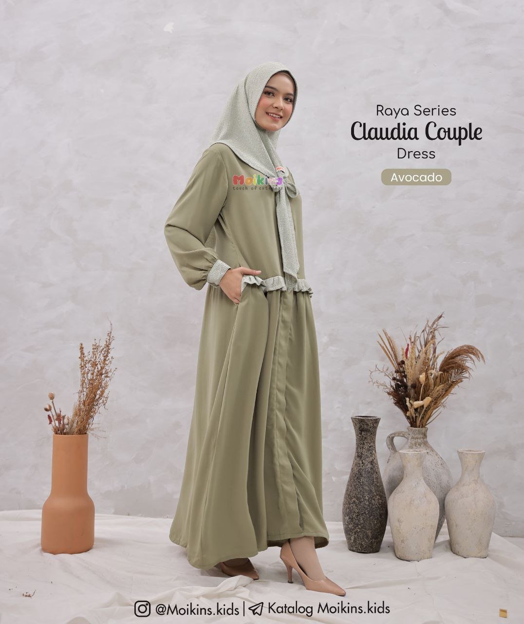 Dengan cutting abaya, los tidak ada potongan dada membuat efek langsing untuk si pemakai. Akses opening berupa kancing depan yang tersembunyi dibalik klep. Aksen kriwil dari bahan knit di bagian depan membuat looks mom jadi matching dengan si kecil.