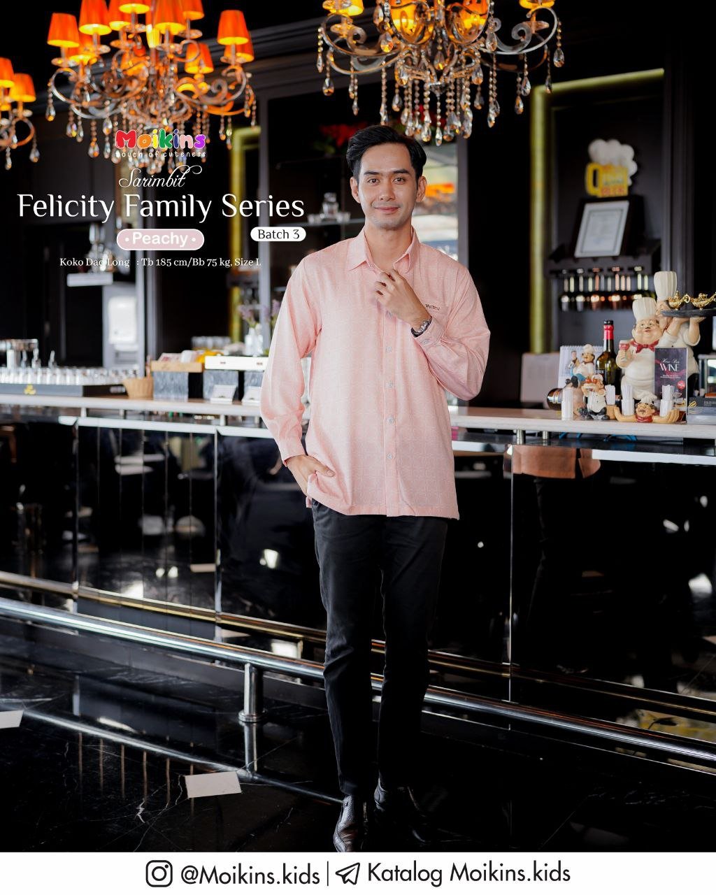 Menggunakan material HAGIA DELUXE, dengan karakter bahan yang ringan, flowy, dan tidak mudah kusut. Didesain dengan cutting koko yang dicutting manly. Sehingga KOKO FELICITY terlihat gagah dan handsome,