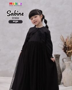 Dress ini di desain dengan cutting yang sangat nyaman di gunakan untuk aktivitas ananda yang aktif ya moms. Bagian manset di desain menggunakan karet kriwil, serta terdapat umpak pada bagian lingkar dress bawah yang di kombinasikan dengan kain silk polos. Akses opening sleting terdapat pada bagian belakang dress.