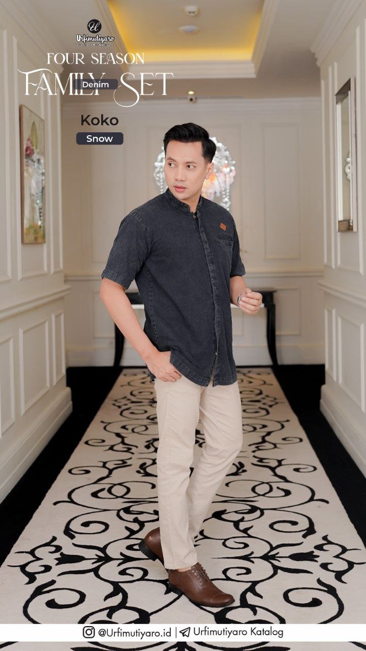 Less is more, mungkin ini ungkapan yang cocok untuk desain koko Four Season. URFI memahami bahwa pecintanya adalah tipe ayah-ayah santuy yang lebih suka dan nyaman mengenakan koko dengan desain dan warna aman. Sehingga disini URFI mendesain koko dengan cutting standar, NAMUN untuk keelokannya, URFI tegaskan pada efek washing (gurat-gurat khas denim) yang membuat koko ini tampak spesial. Ada label leather UWAIS yang disematkan di dada kiri.