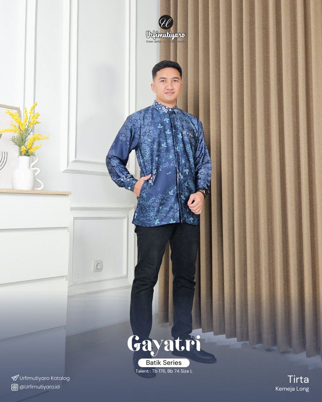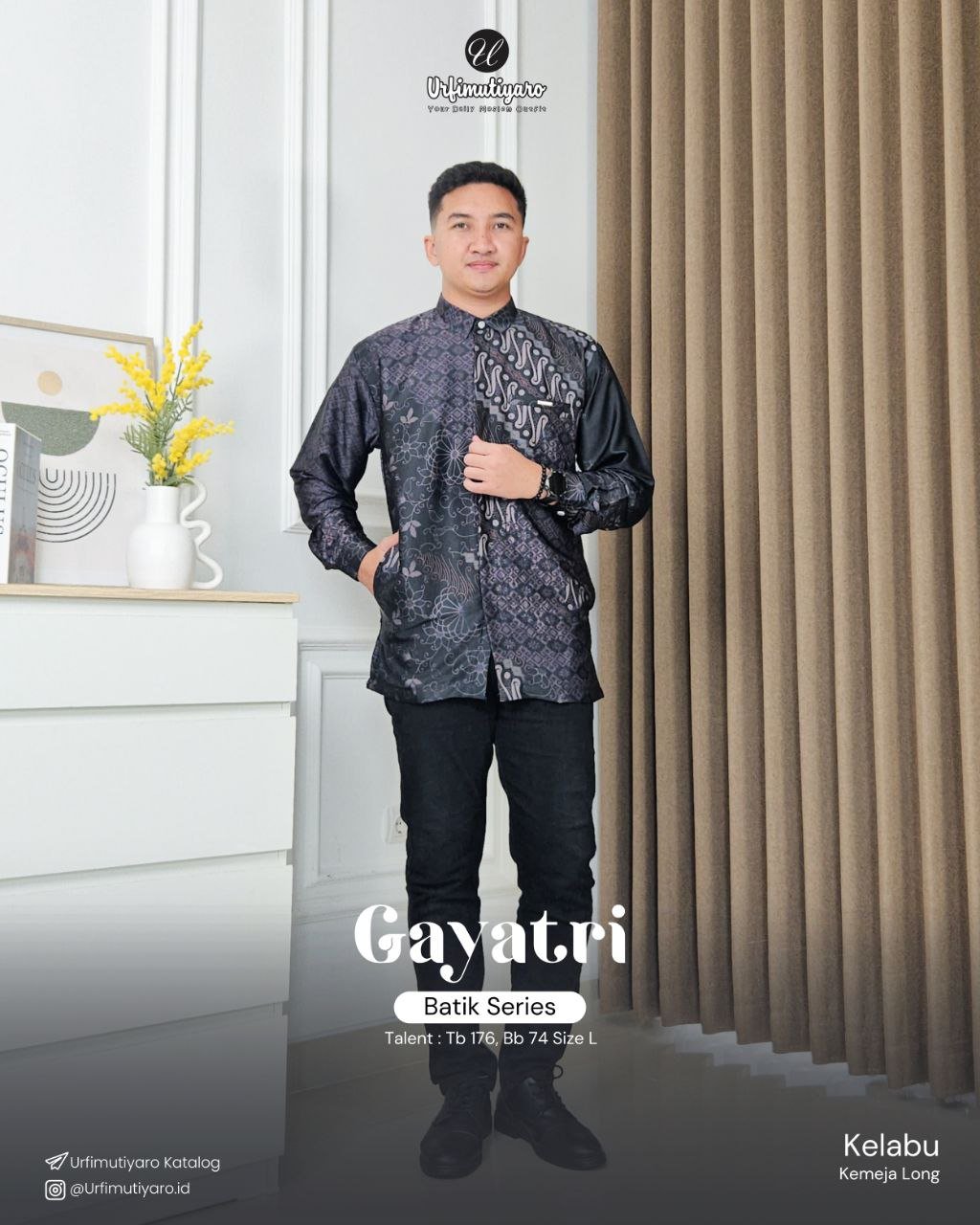 Gayatri Couple memiliki motif batik dengan kombinasi pattern bunga dan geometri serta logo u signature Urfimutiyaro yang menjadi highlight Batik Series kali ini. Pattern Gayatri Couple diproduksi dengan teknik digital printing, sehingga warna yang dihasilkan tajam dan tidak luntur.