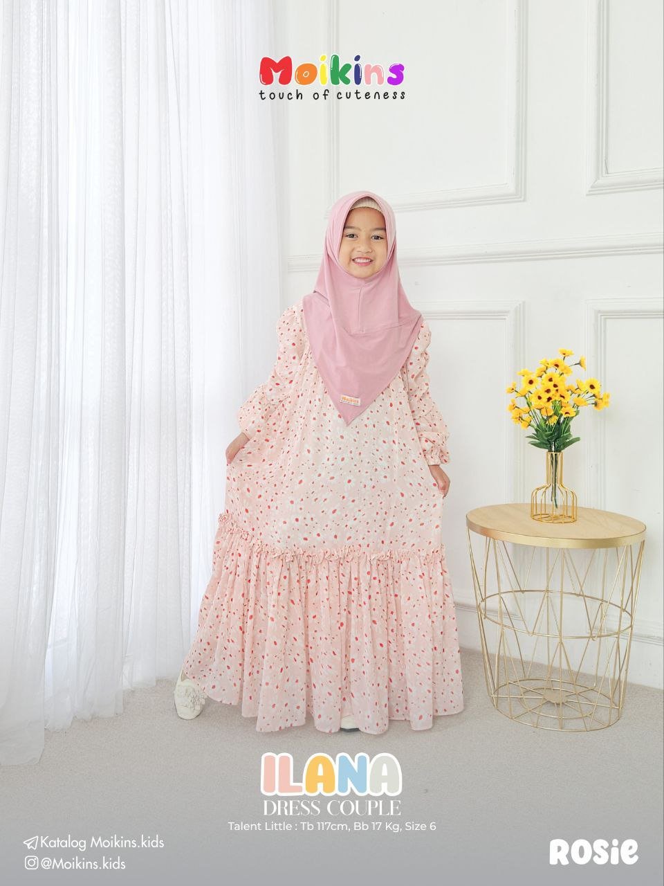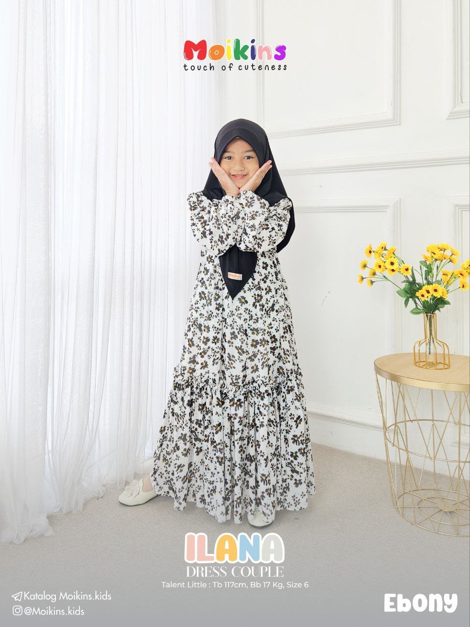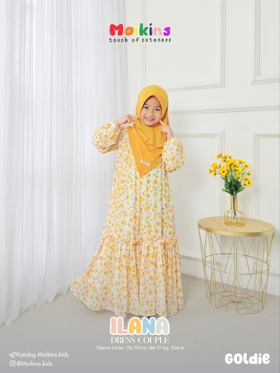 Kami sematkan label gold Moikins di dada kanan dress sebagai aksen luxury.