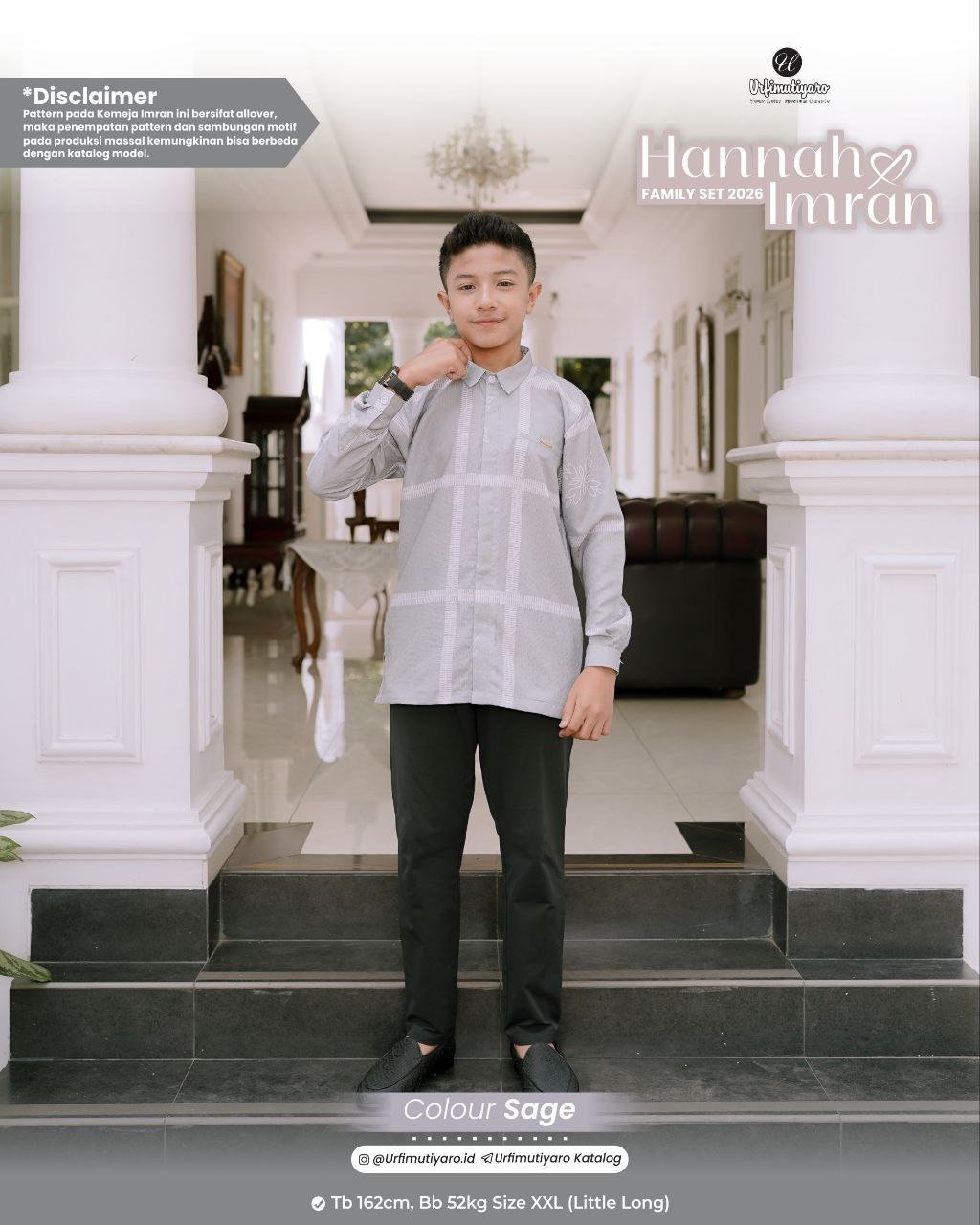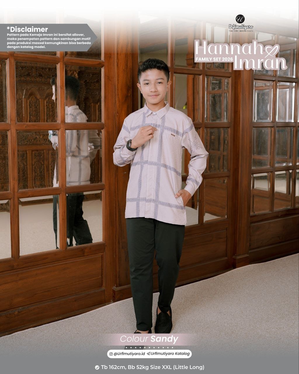 Kemeja Imran DAD dan LITTLE tampil dengan potongan reguler fit yang basic, cocok untuk segala macam postur pria. Tahun ini, URFI memutuskan untuk menambahkan kerah kemeja agar outfit Imran bisa langsung dipakai ngantor setelah lebaran.