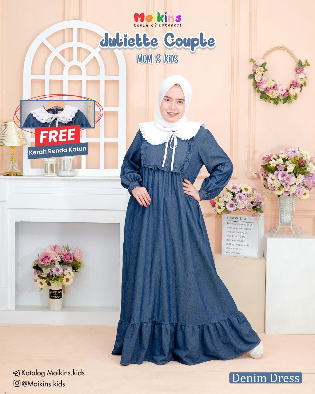GRATIS kerah toyobo dengan aksen renda yang super cute, bisa diaplikasikan pada semua koleksi dress di rumah.