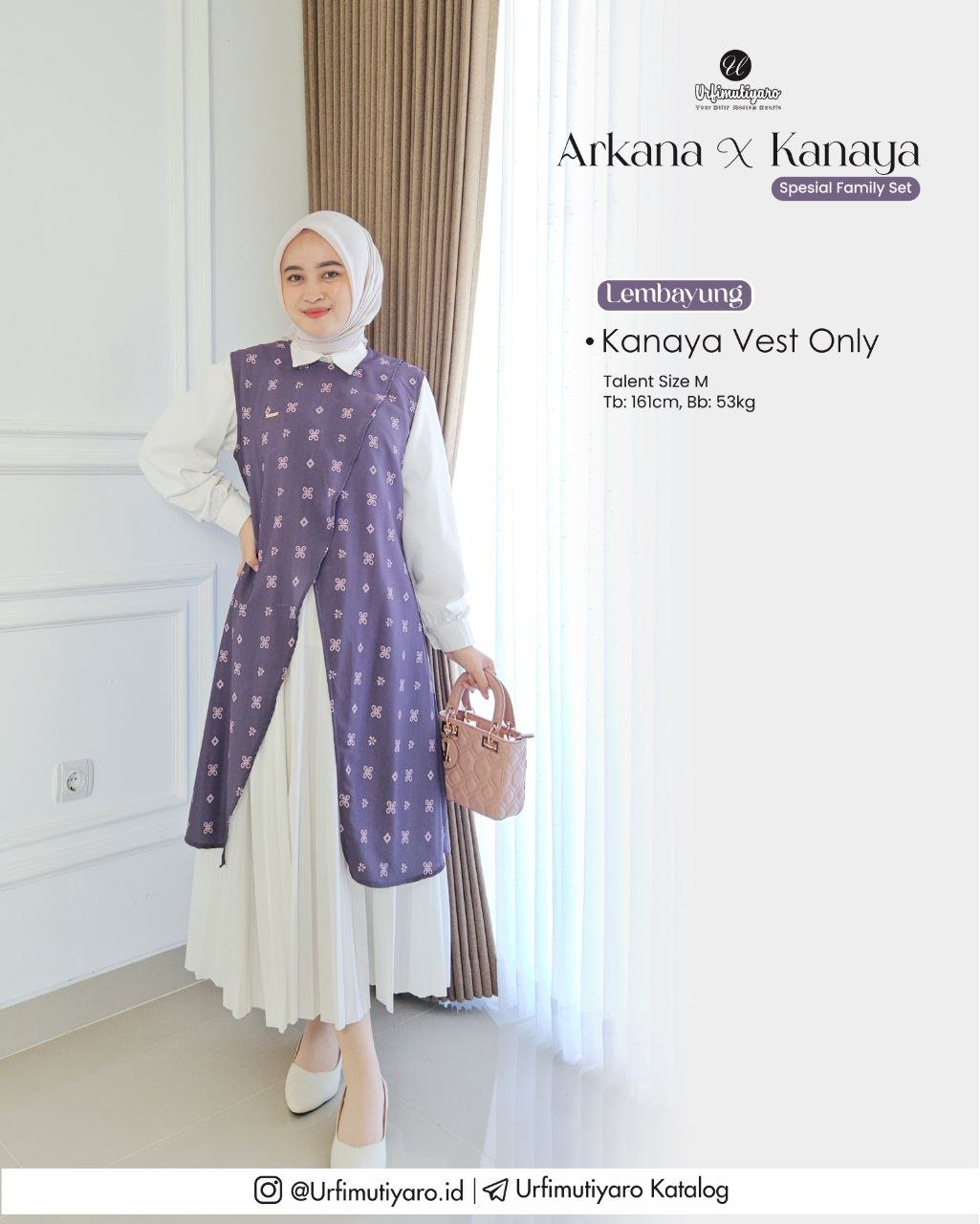 Menggunakan material HAGIA DELUXE, dengan karakter bahan yang ringan, flowy, dan tidak mudah kusut.