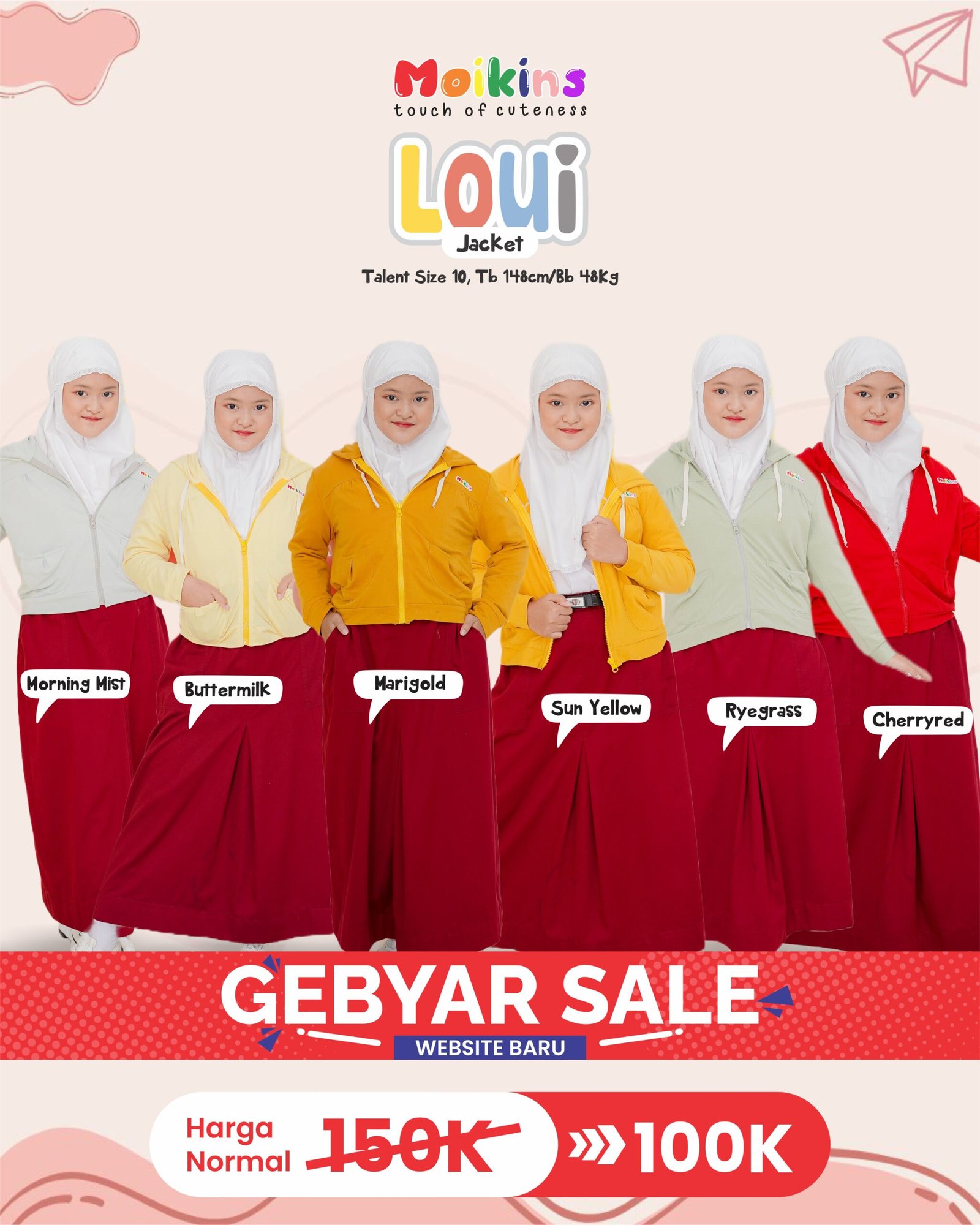 Loui jacket bisa dipakai diberbagai suasana dan aktivitas ananda, menghangatkan saat cuaca dingin, melindungi dari panas matahari, dan cocok untuk ootd ke sekolah juga.
