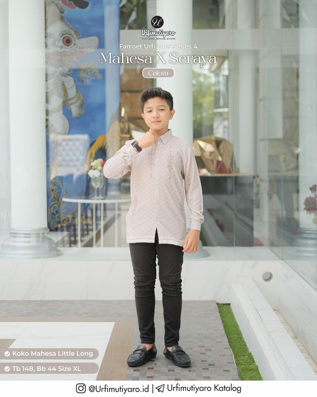 Koko Mahesa menggunakan material HAGIA DELUXE, memiliki karakteristik bahan yang ringan, flowy, dan tidak mudah kusut.