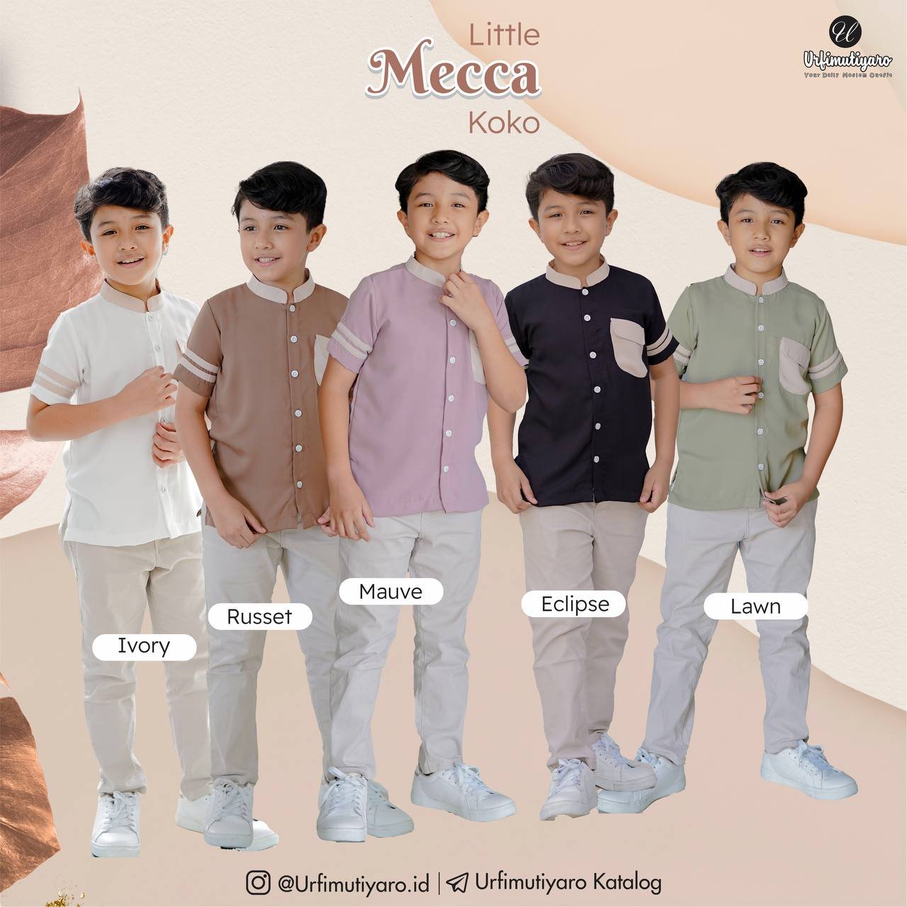 Berbeda dengan koko dewasa, desain LITTLE MECCA kami buat menggemaskan agar cocok untuk anak-anak. Two stripes desain ada pada lengan koko. Kantong koko terletak pada dada kiri dengan bentuk lengkung dan berpenutup. Sangat menggemaskan untuk si jagoan