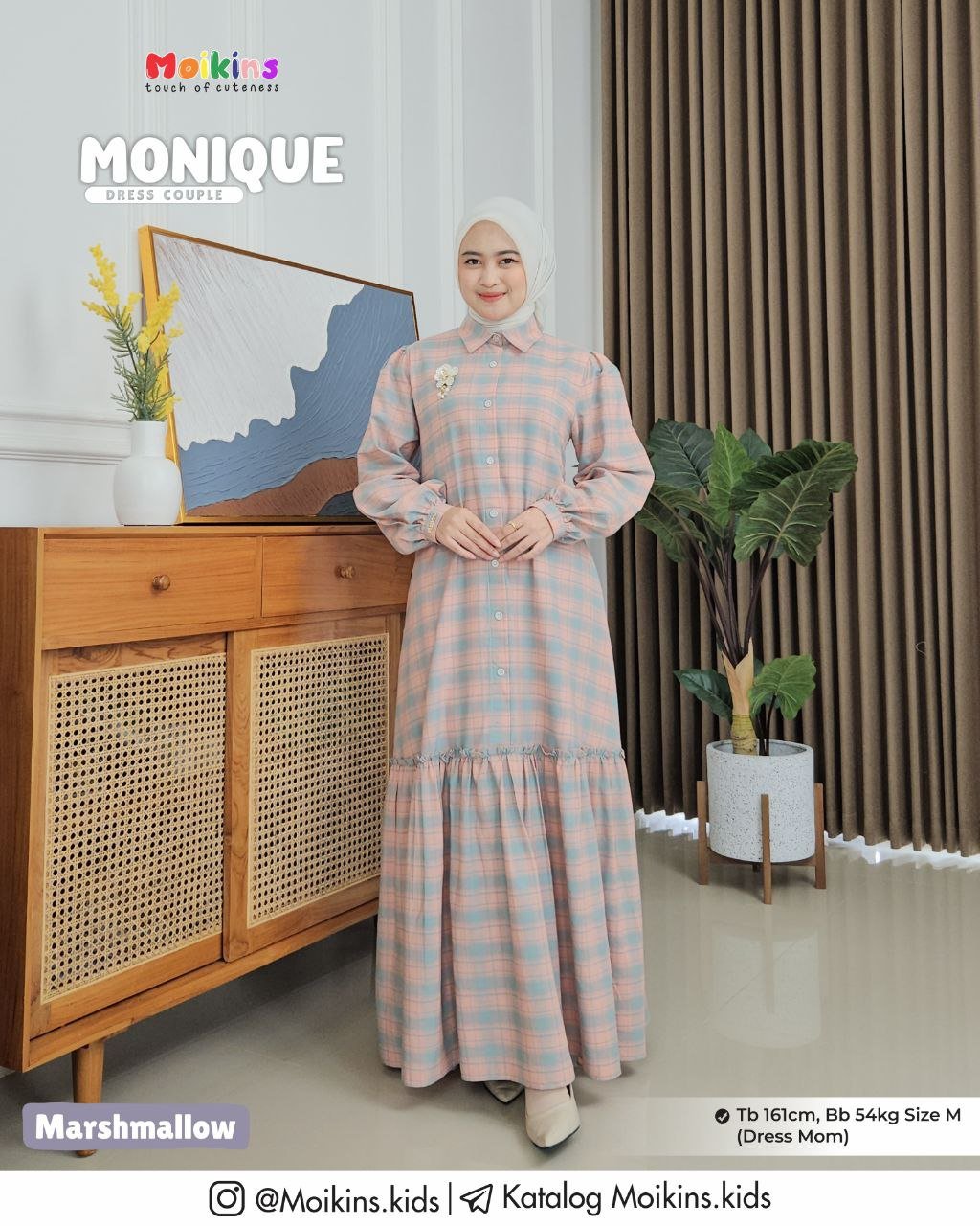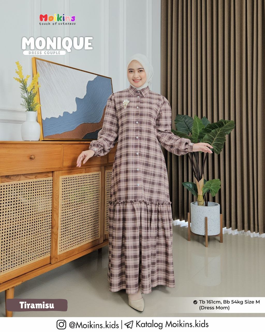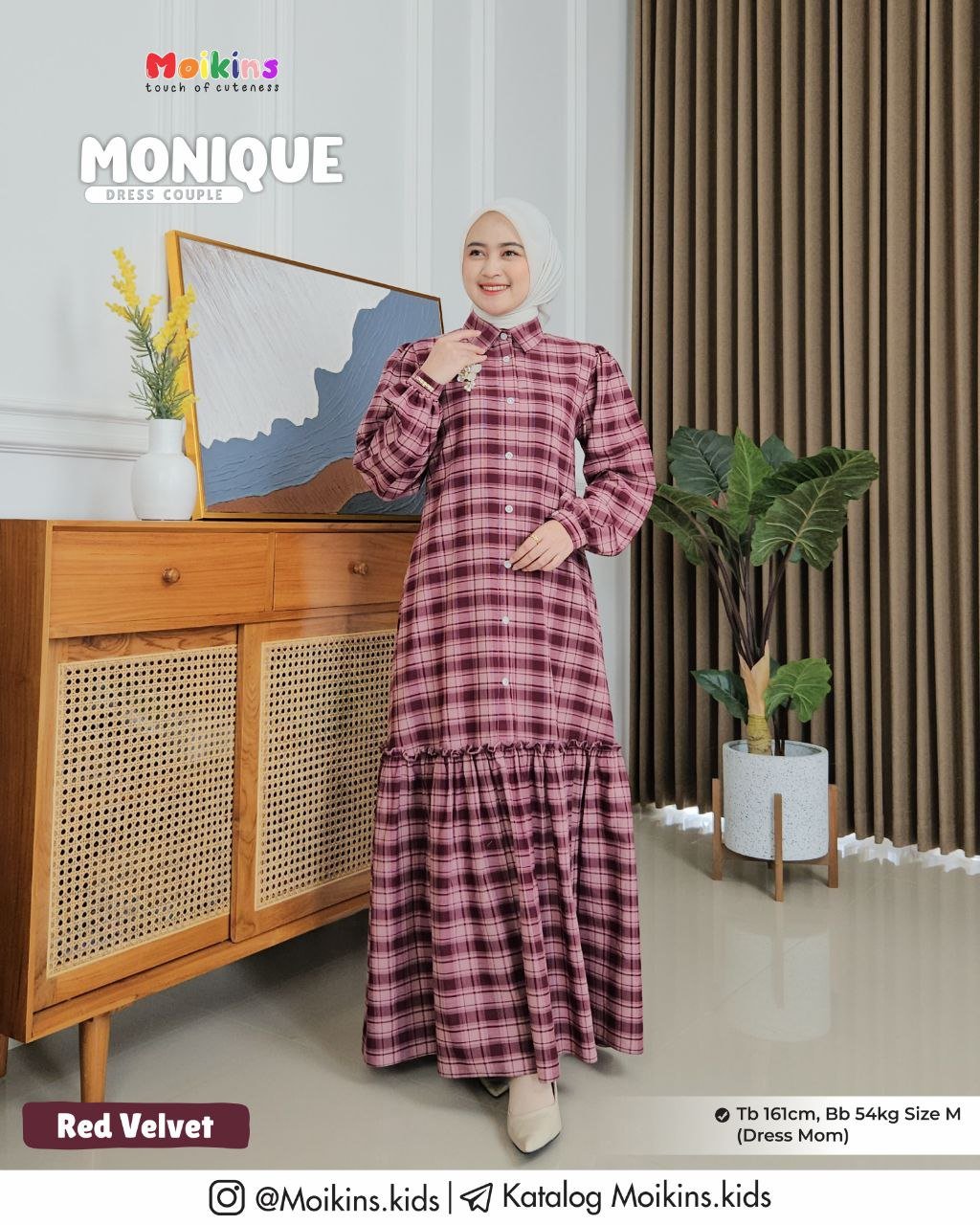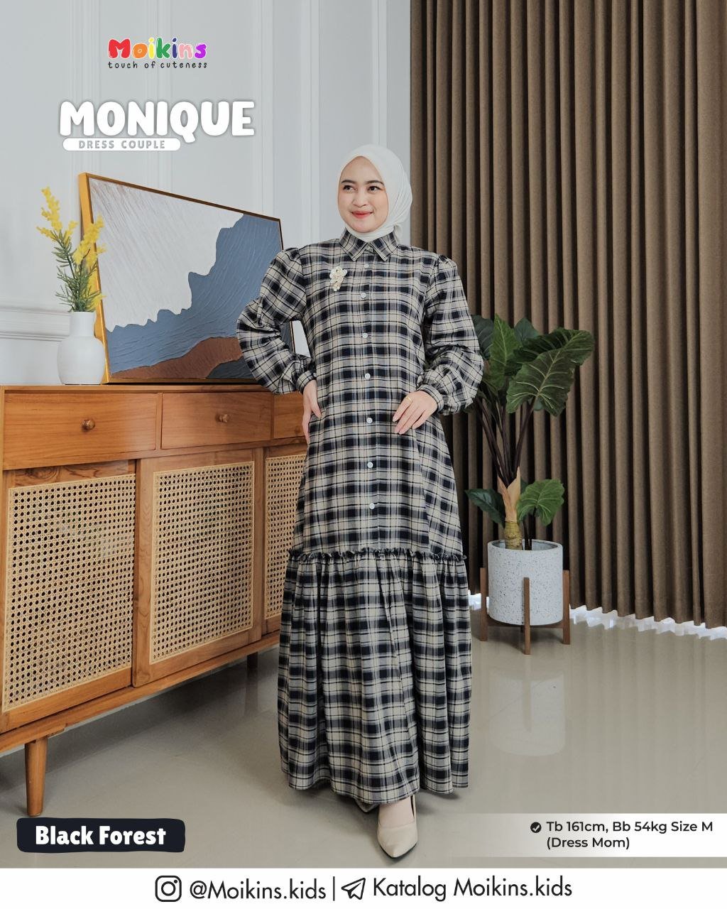 Pada material Monique Dress memiliki pattern plaid (kotak-kotak) yang menjadi highlight Dress.