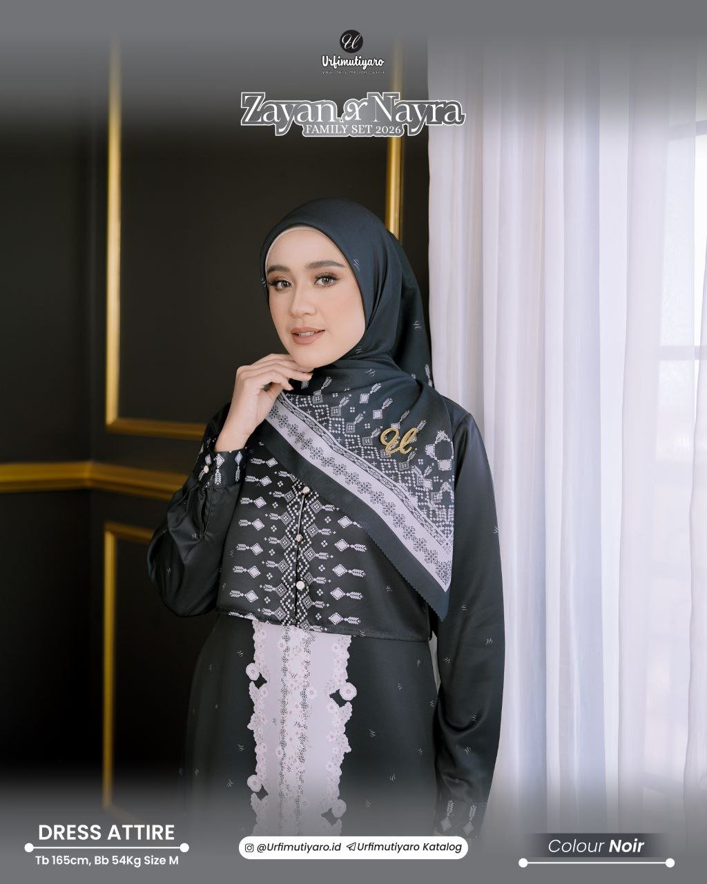 Nayra Scarf hadir dengan pattern senada seperti dressnya, dihiasi cutting laser di tepi yang membentuk motif scallop elegan. Scarf ini sempurna untuk jilbab segiempat, lengkap dengan sentuhan mewah dari logo metal ‘U’ di ujungnya, menambah kesan anggun dan eksklusif