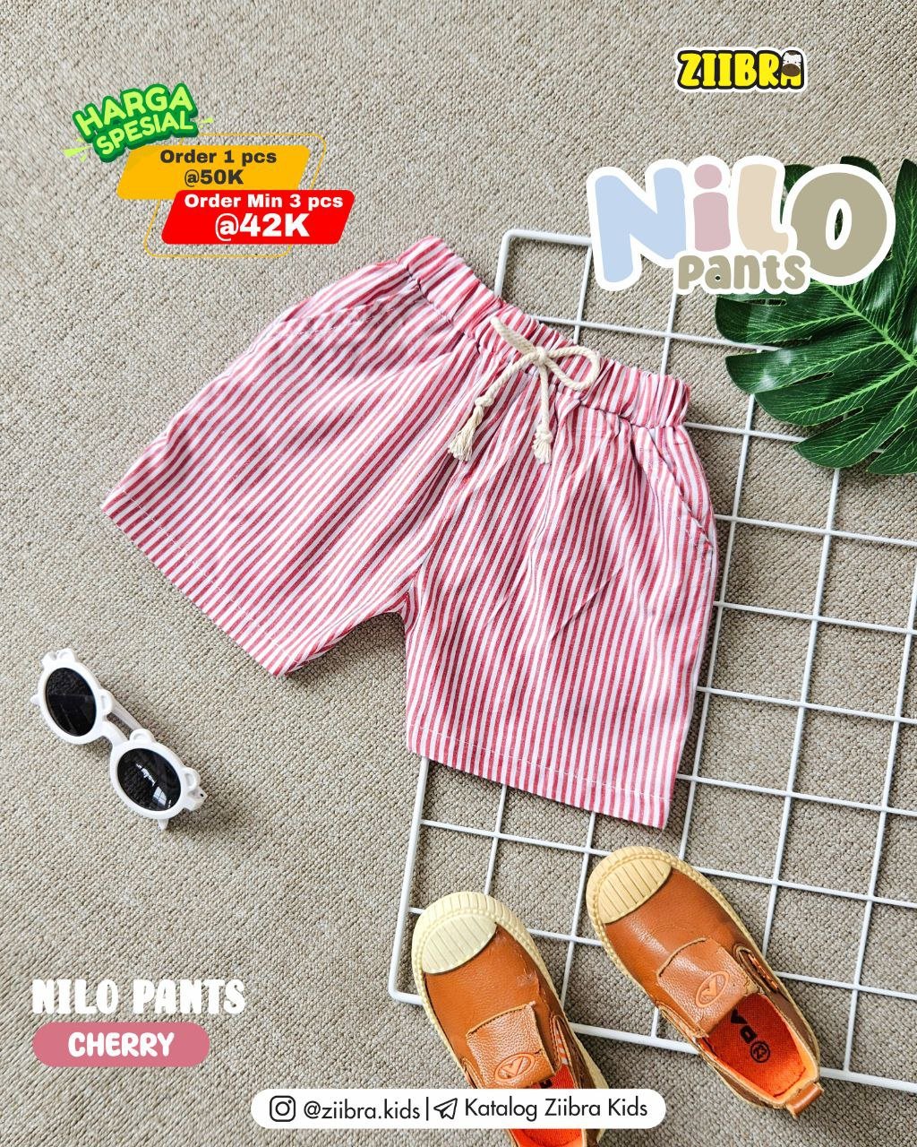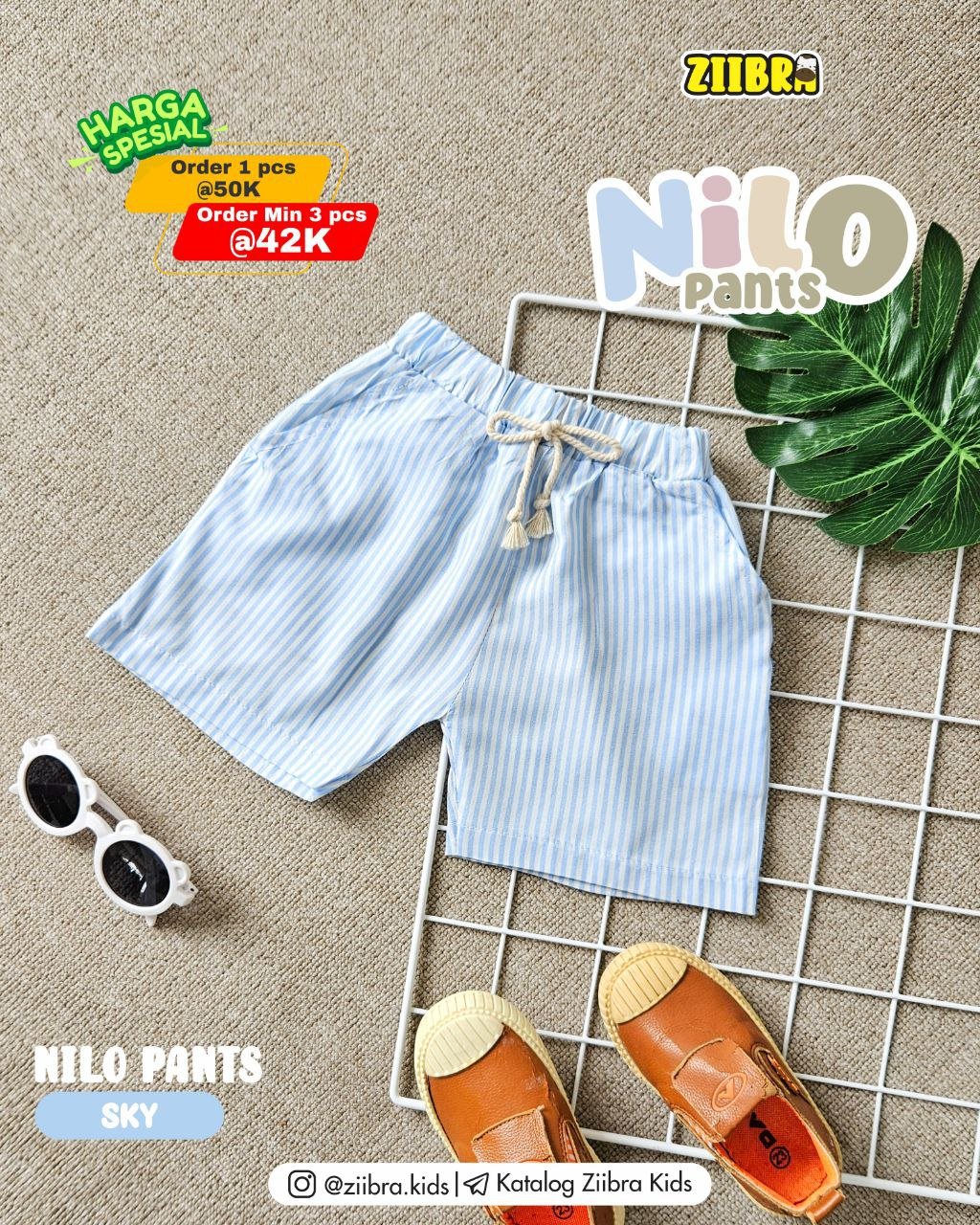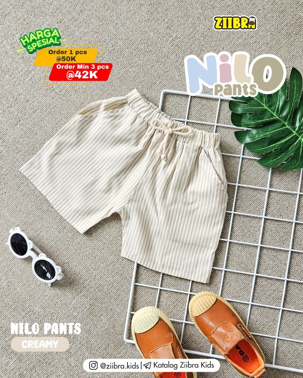 Nilo Pants hadir dengan motif garis lembut bernuansa natural yang memberikan kesan rapi namun tetap santai. Cocok dipakai bermain, jalan santai,