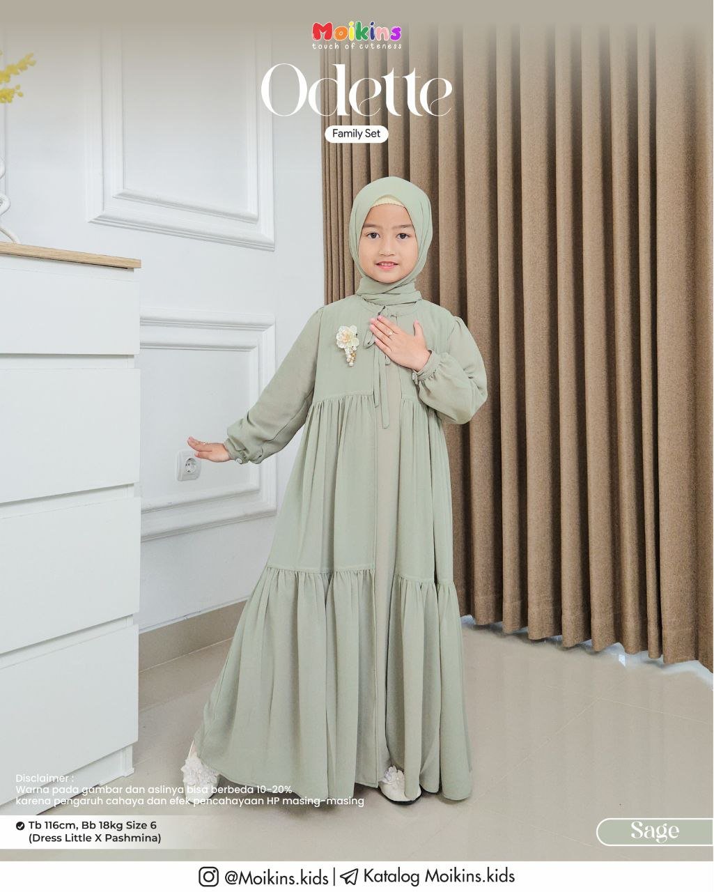 Selain dipairing dengan Khimar, Odette Dress juga dapat dipairingkan dengan pashmina dengan warna senada yang menambah anggun looks moms.