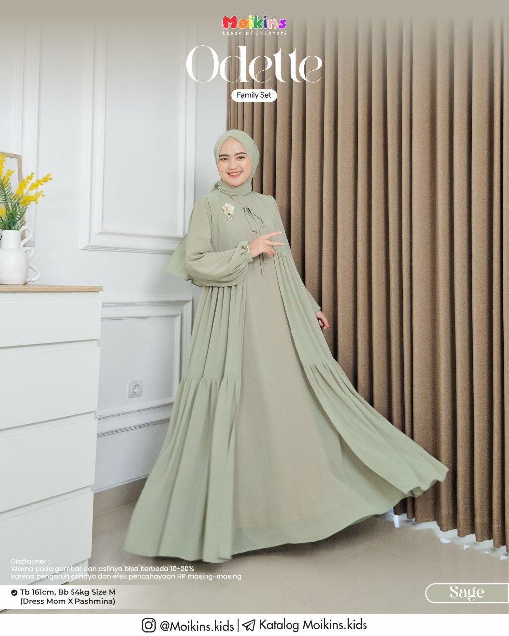 Selain dipairing dengan Khimar, Odette Dress juga dapat dipairingkan dengan pashmina dengan warna senada yang menambah anggun looks moms.