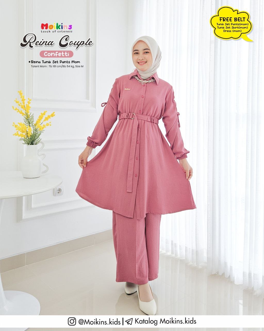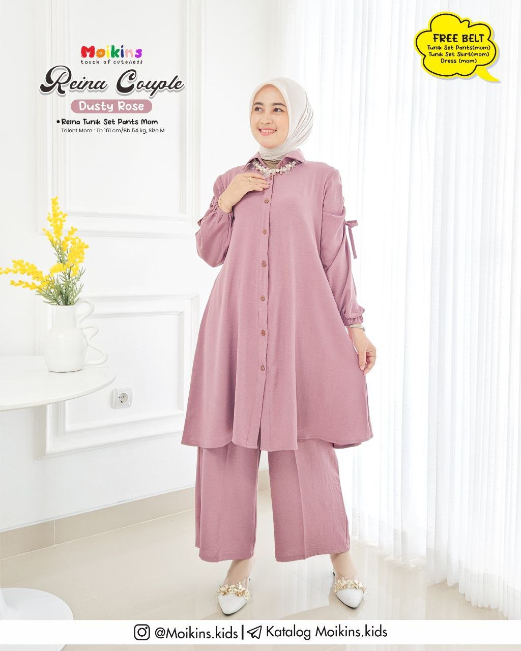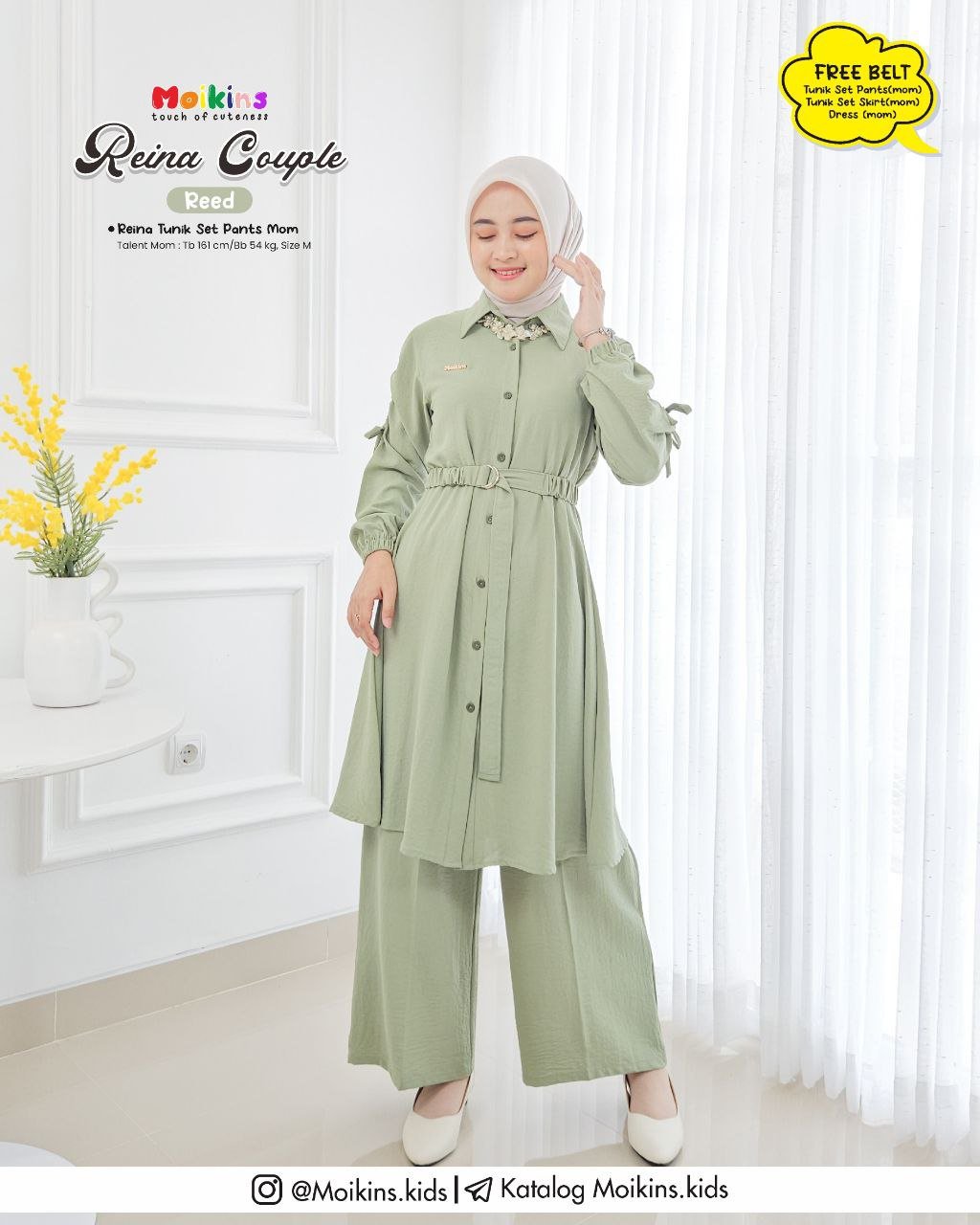 ⚠️ FREE BELT untuk setiap pembelian TUNIK SET PANTS, TUNIK SET SKIRT, & DRESS (MOM) yang dapat kamu styling dipinggang untuk menambah kesan feminim Reina.⚠️
