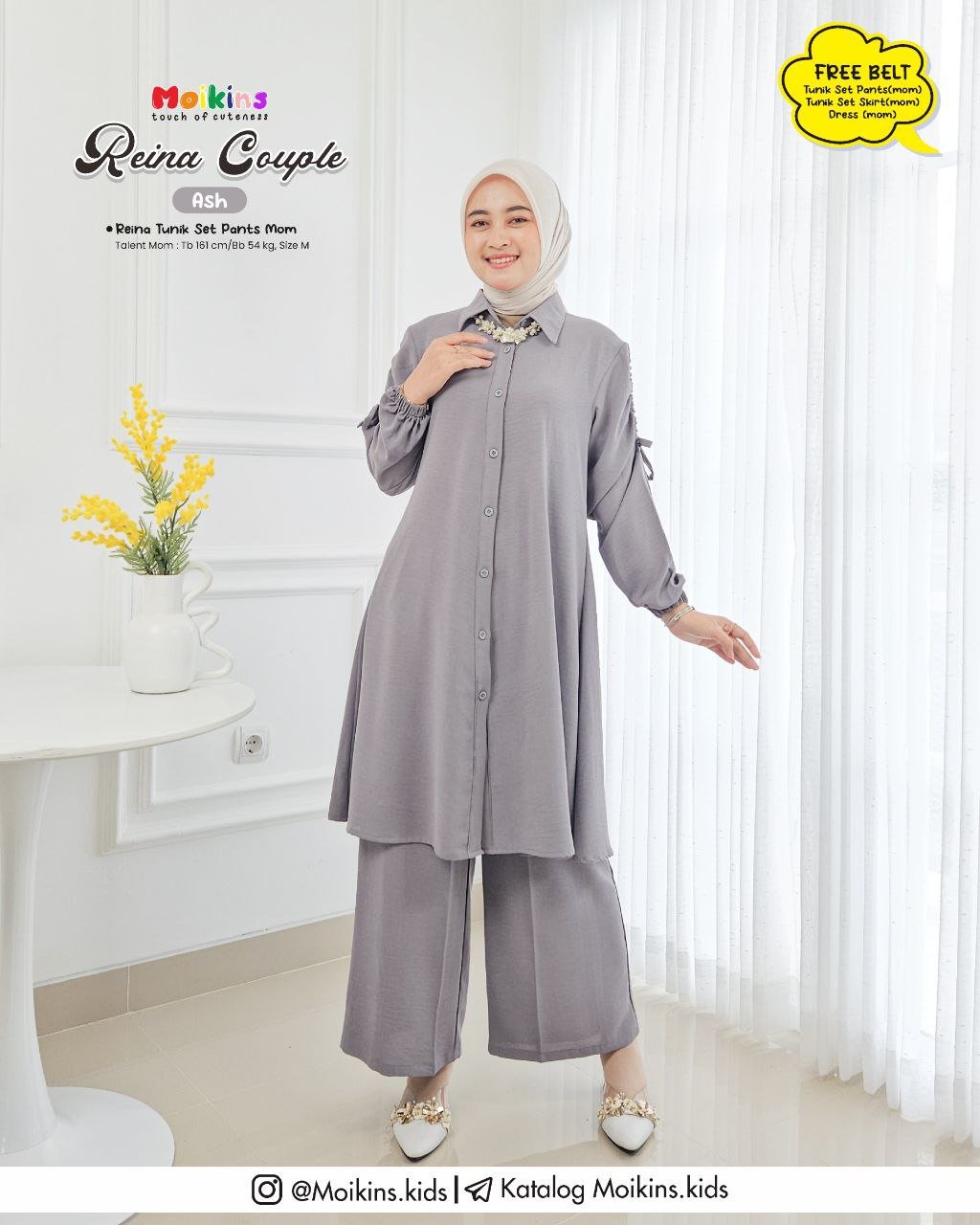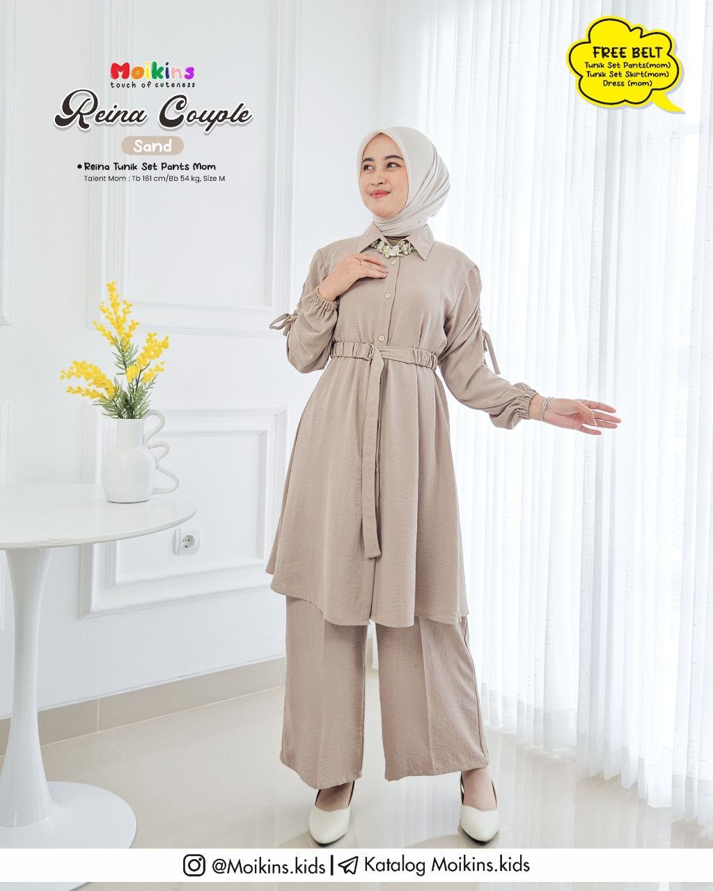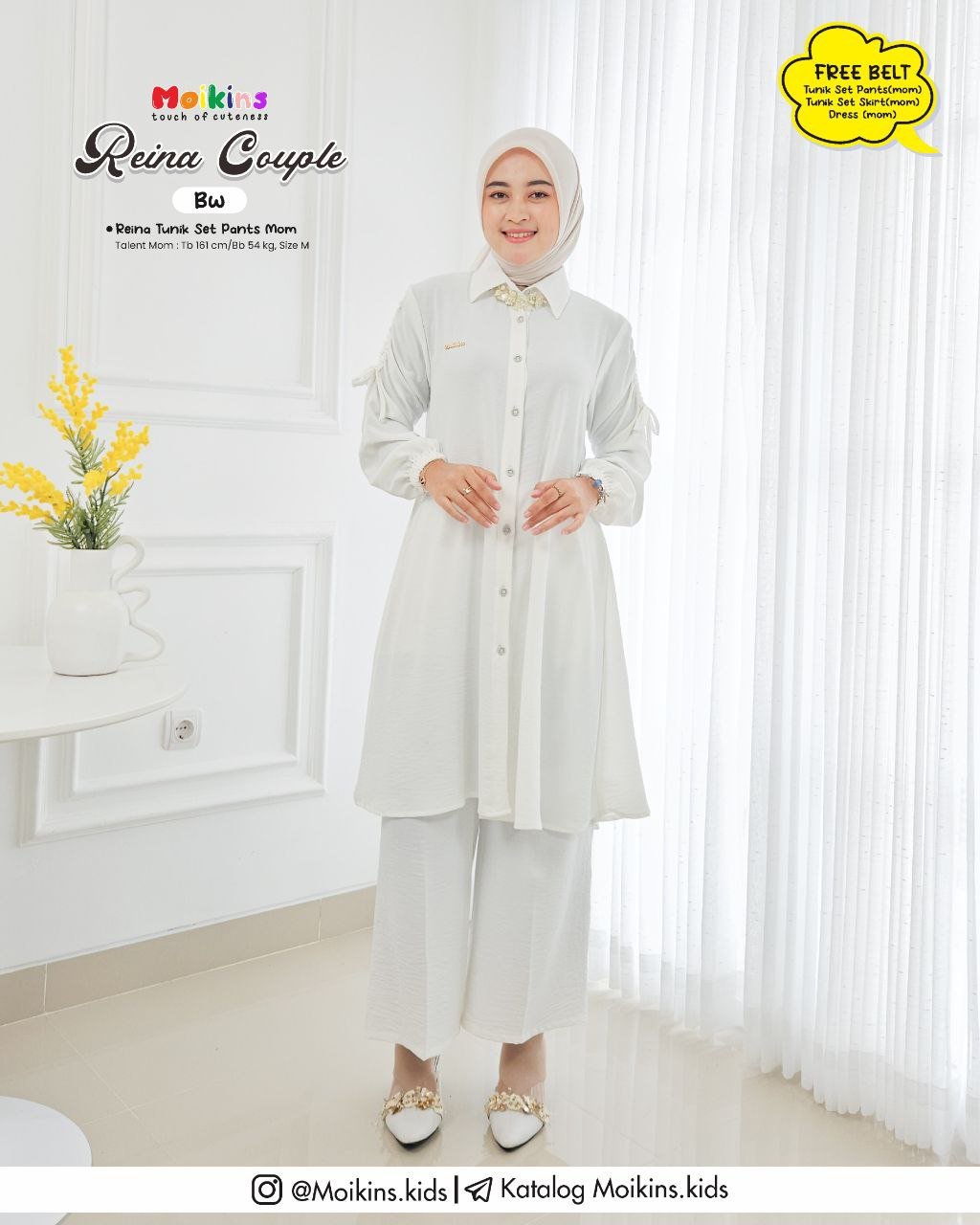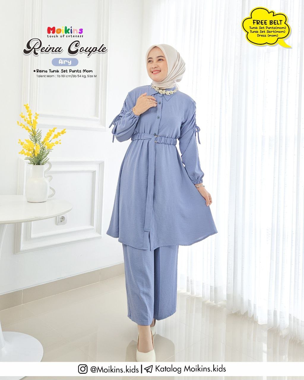 ⚠️ FREE BELT untuk setiap pembelian TUNIK SET PANTS, TUNIK SET SKIRT, & DRESS (MOM) yang dapat kamu styling dipinggang untuk menambah kesan feminim Reina.⚠️