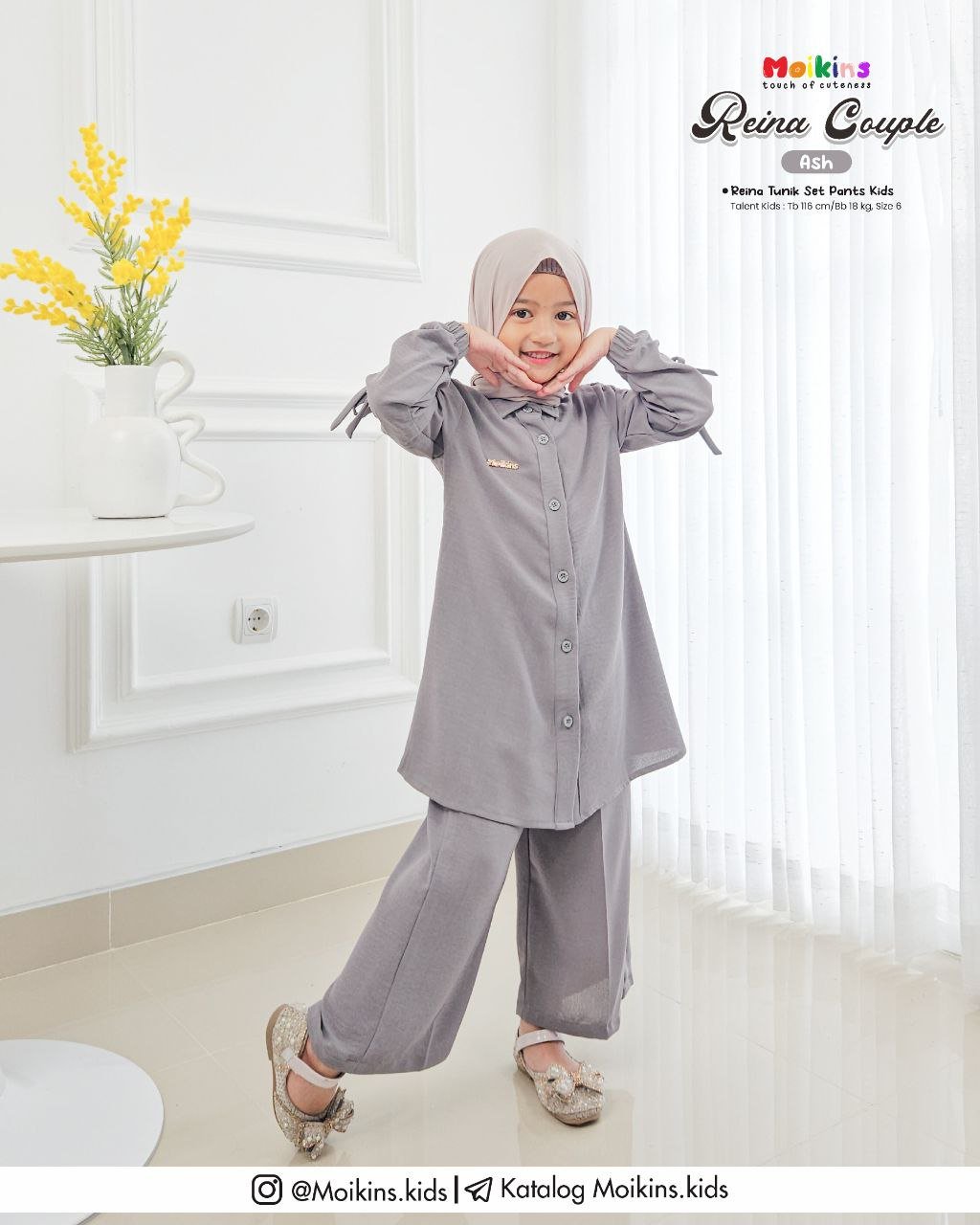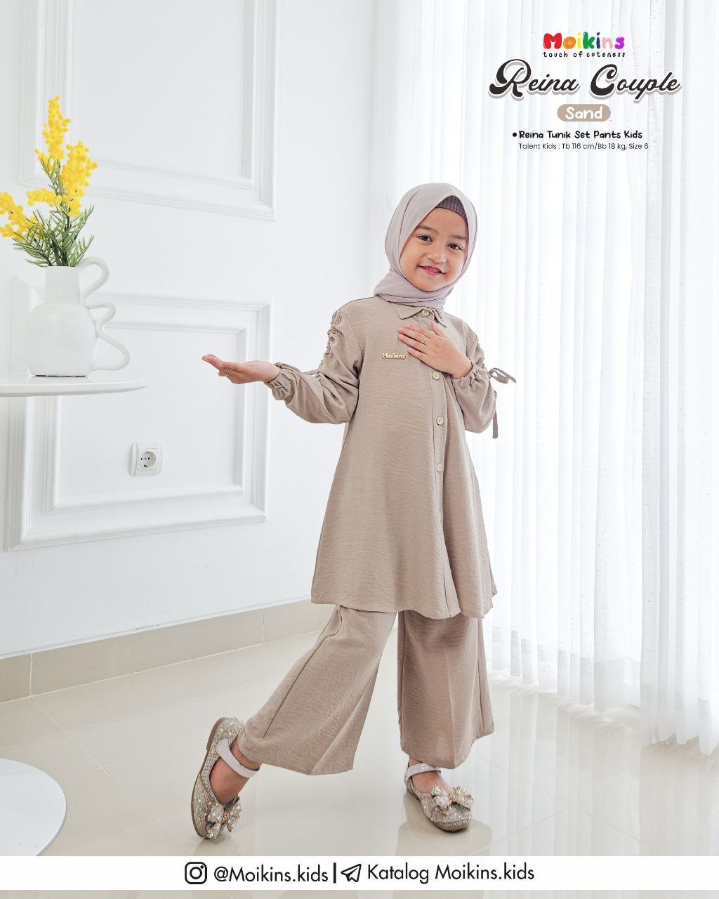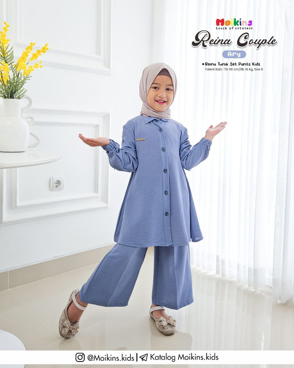 REINA Couple by @moikins.kids menggunakan bahan Armani Crinkle, yaitu jenis bahan crinkle terbaik di kelasnya. No gerah, ngga menyebabkan bebauan, yang pasti adem dan nyamannnn. Bahan ini memiliki ketebalan sedang dan agak strech, insyaAllah cocok untuk outfit si kecil.