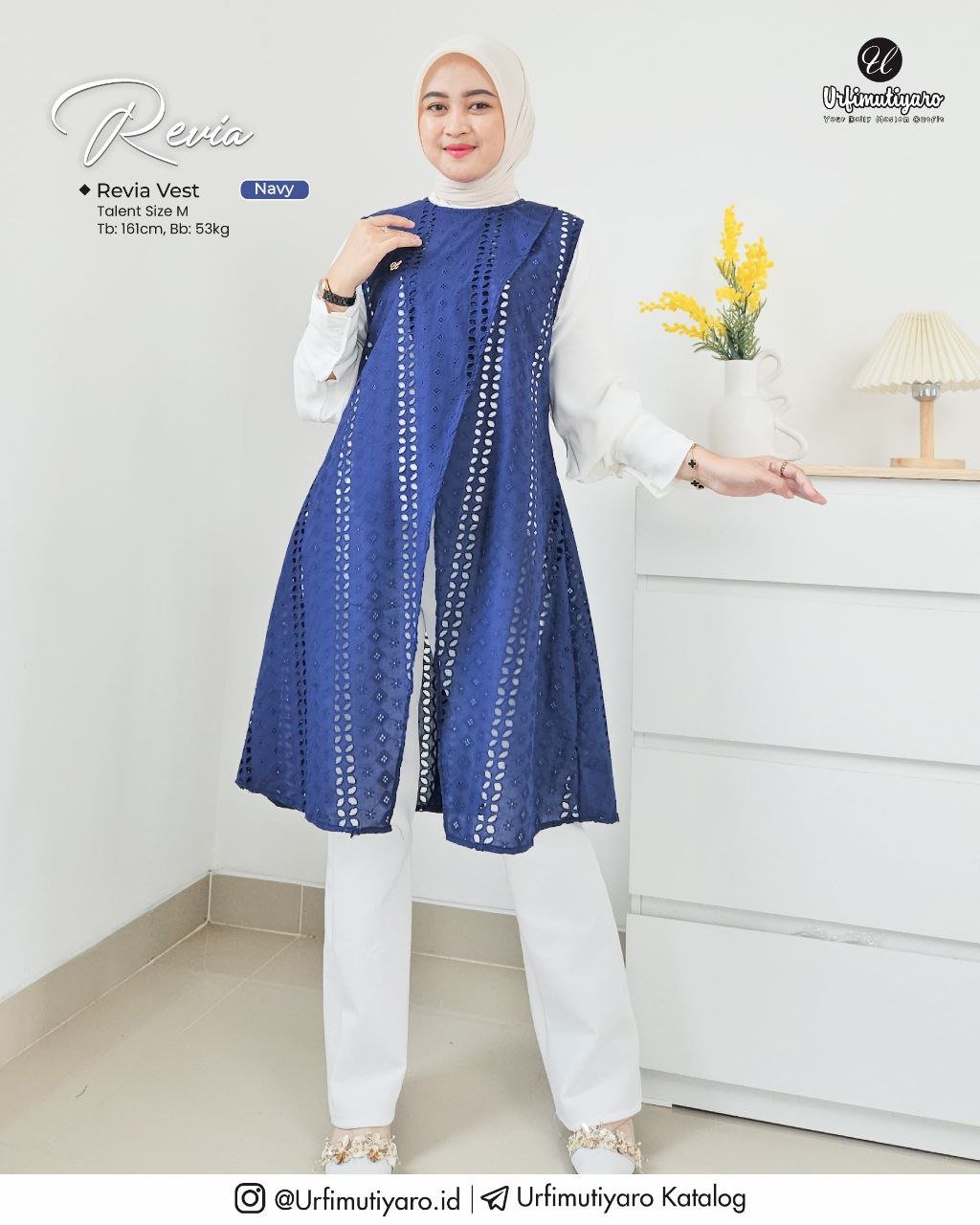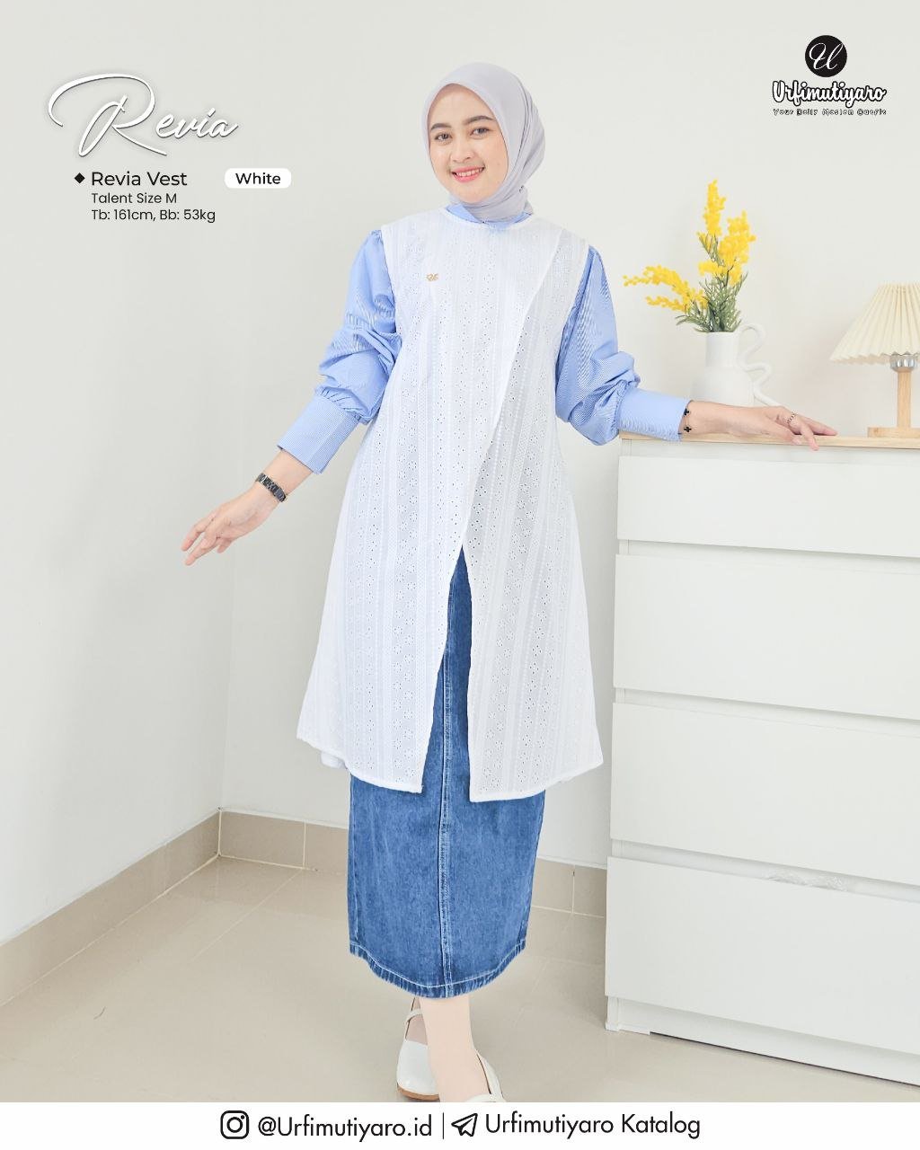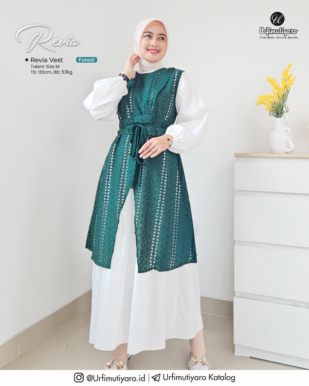 Untuk up style nya, Urfi Sister bisa pairingkan Revia Dress dengan Vest yang tersedia dalam 2 model.