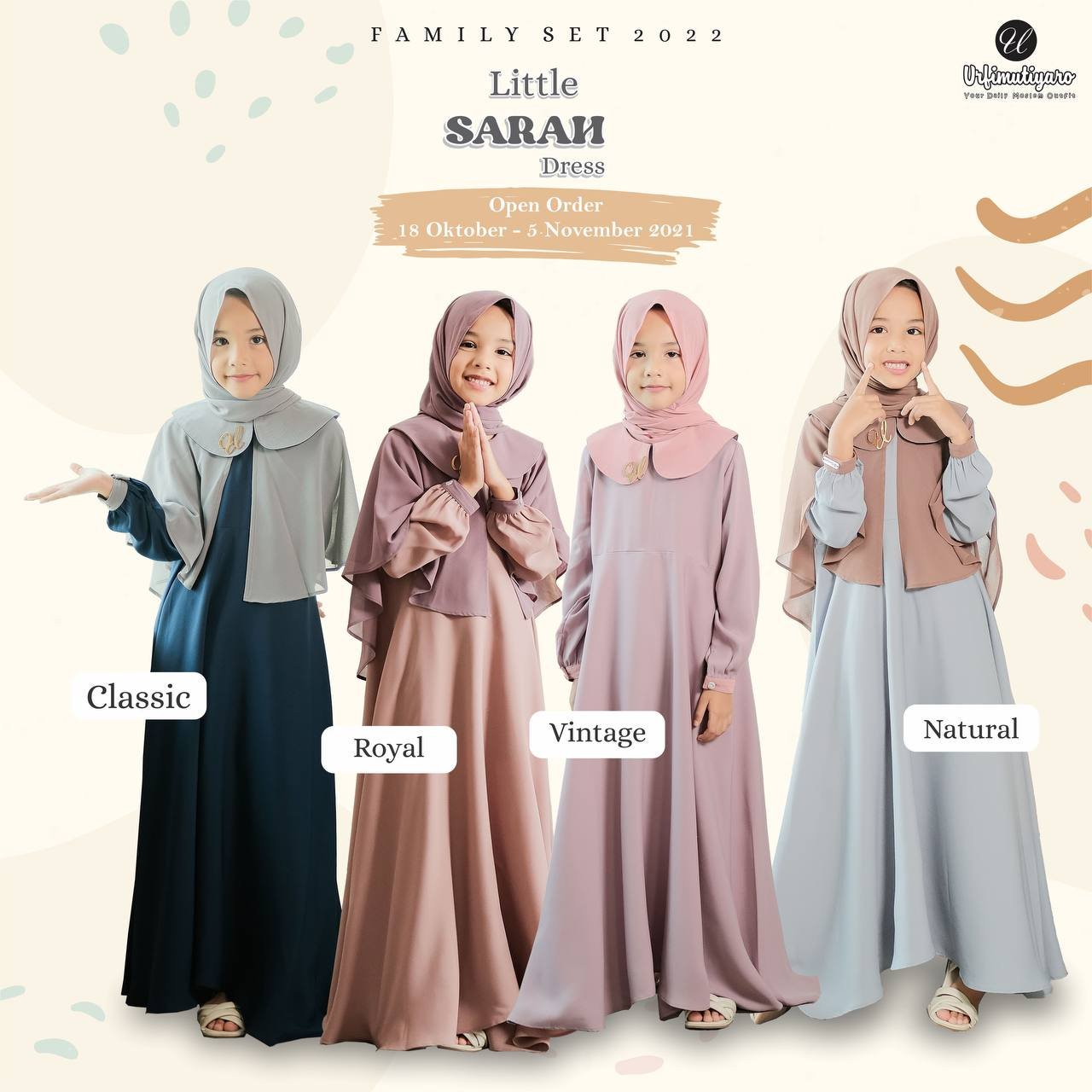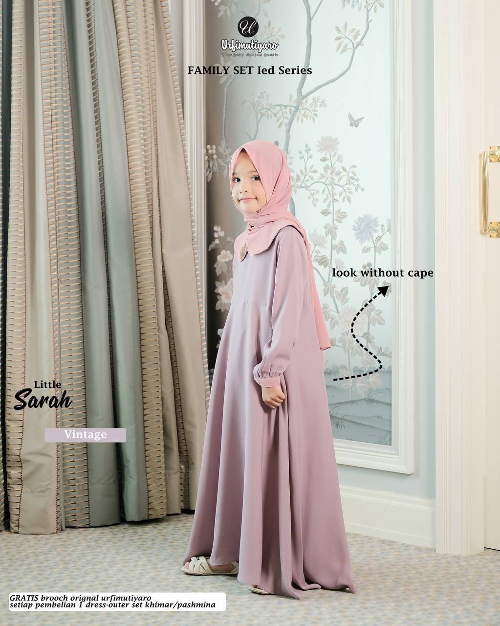 Desain keduanya sama, terdiri dari Dress Basic klok mayung & outer. Istimewanya, masing-masing outer bisa dilepas sehingga Sarah dress ini mempunyai 2 look.