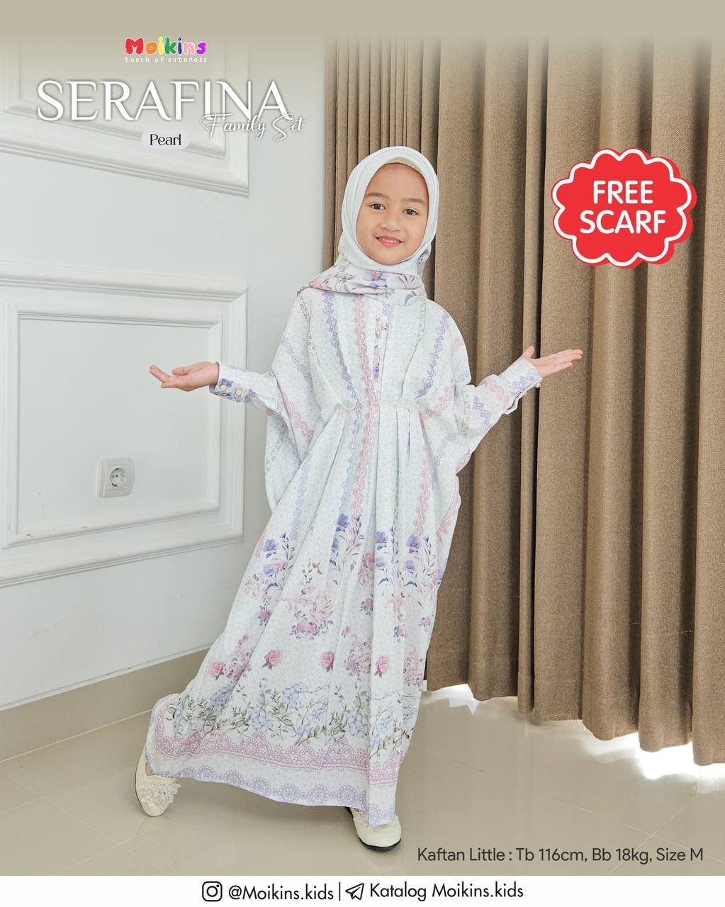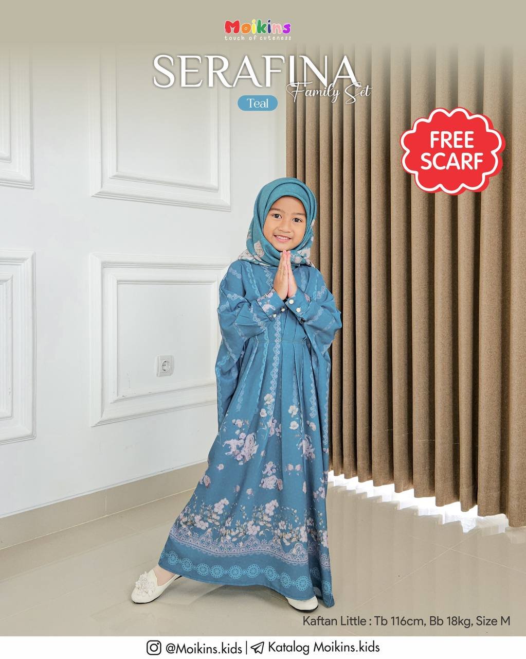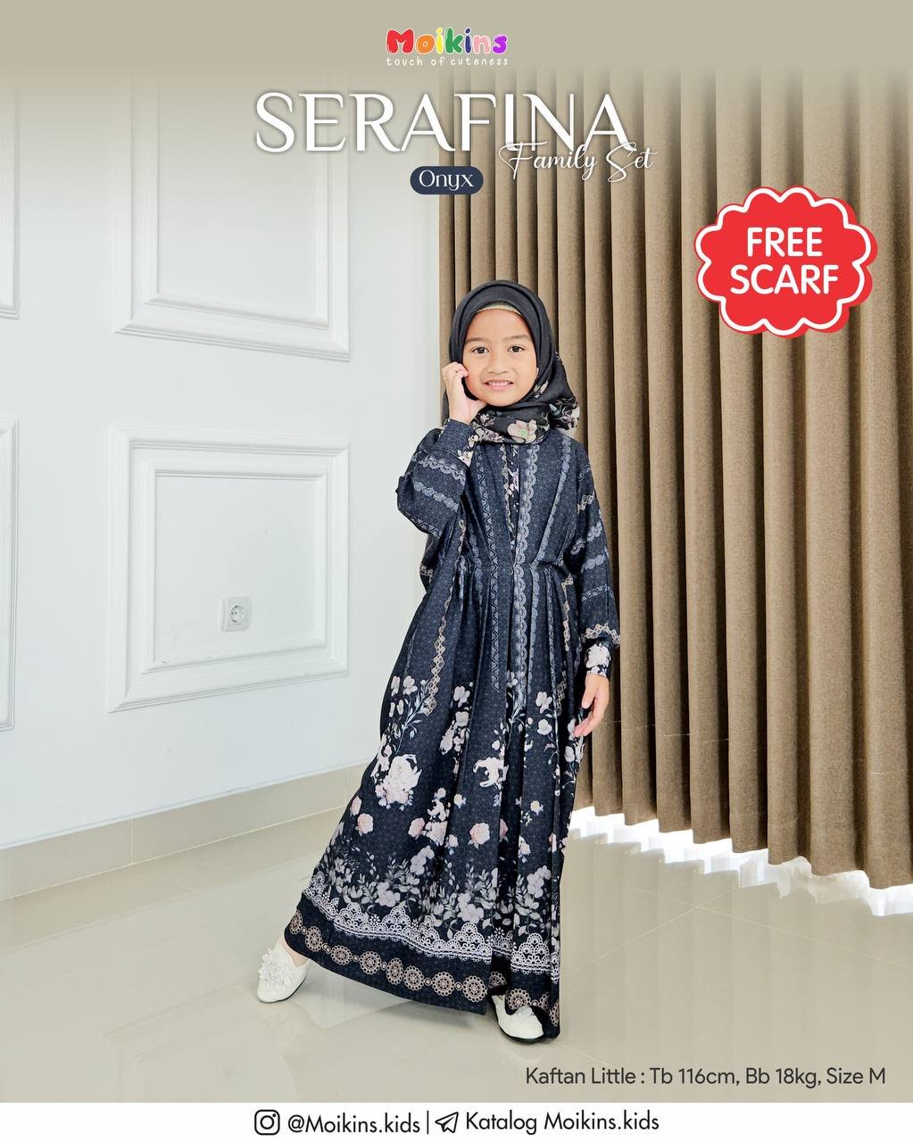 Serafina Kaftan Mom dan Little didesain sama, sehingga Mom bisa kembaran dengan nakdis di hari raya nanti.