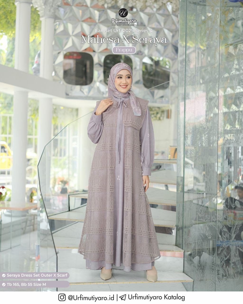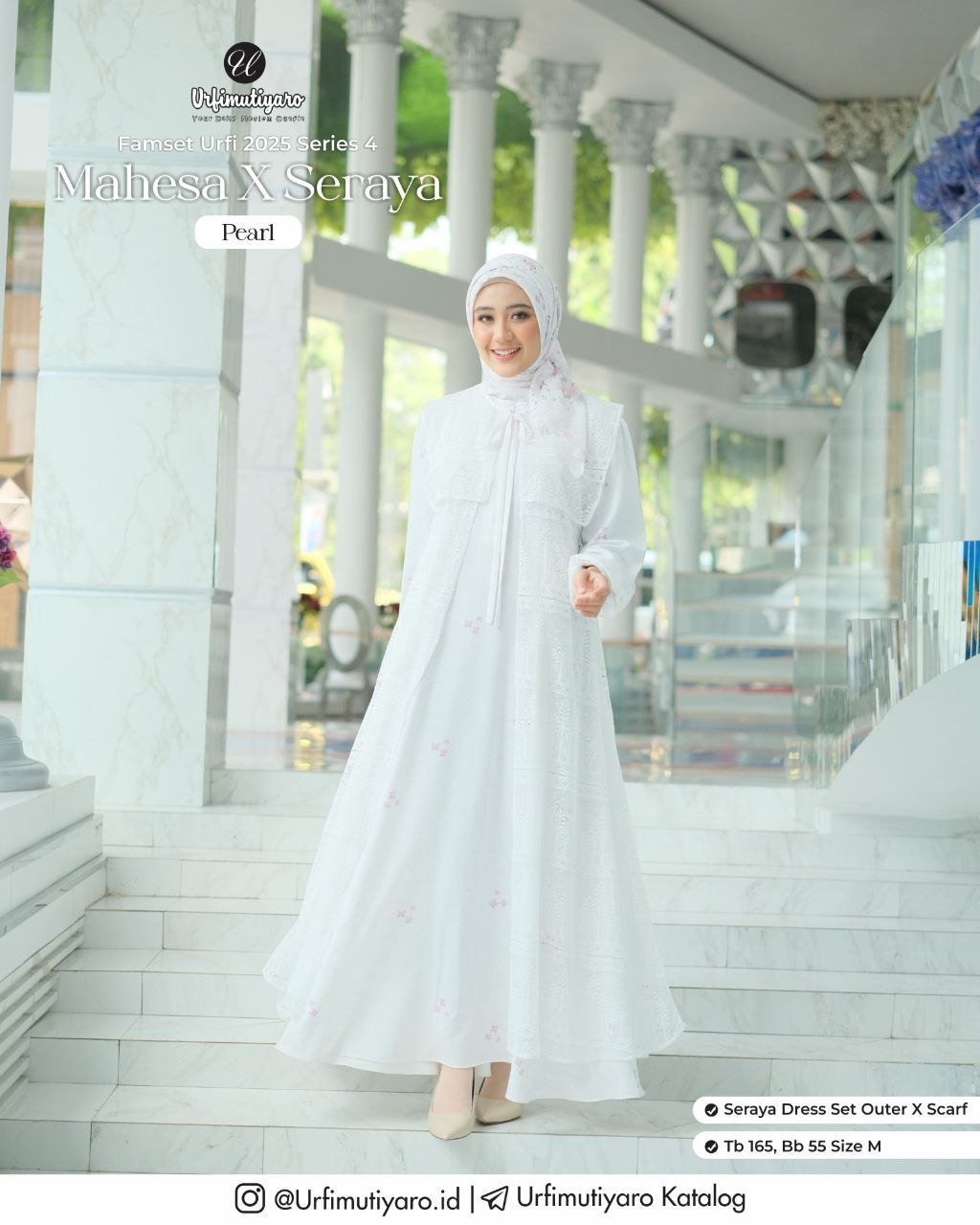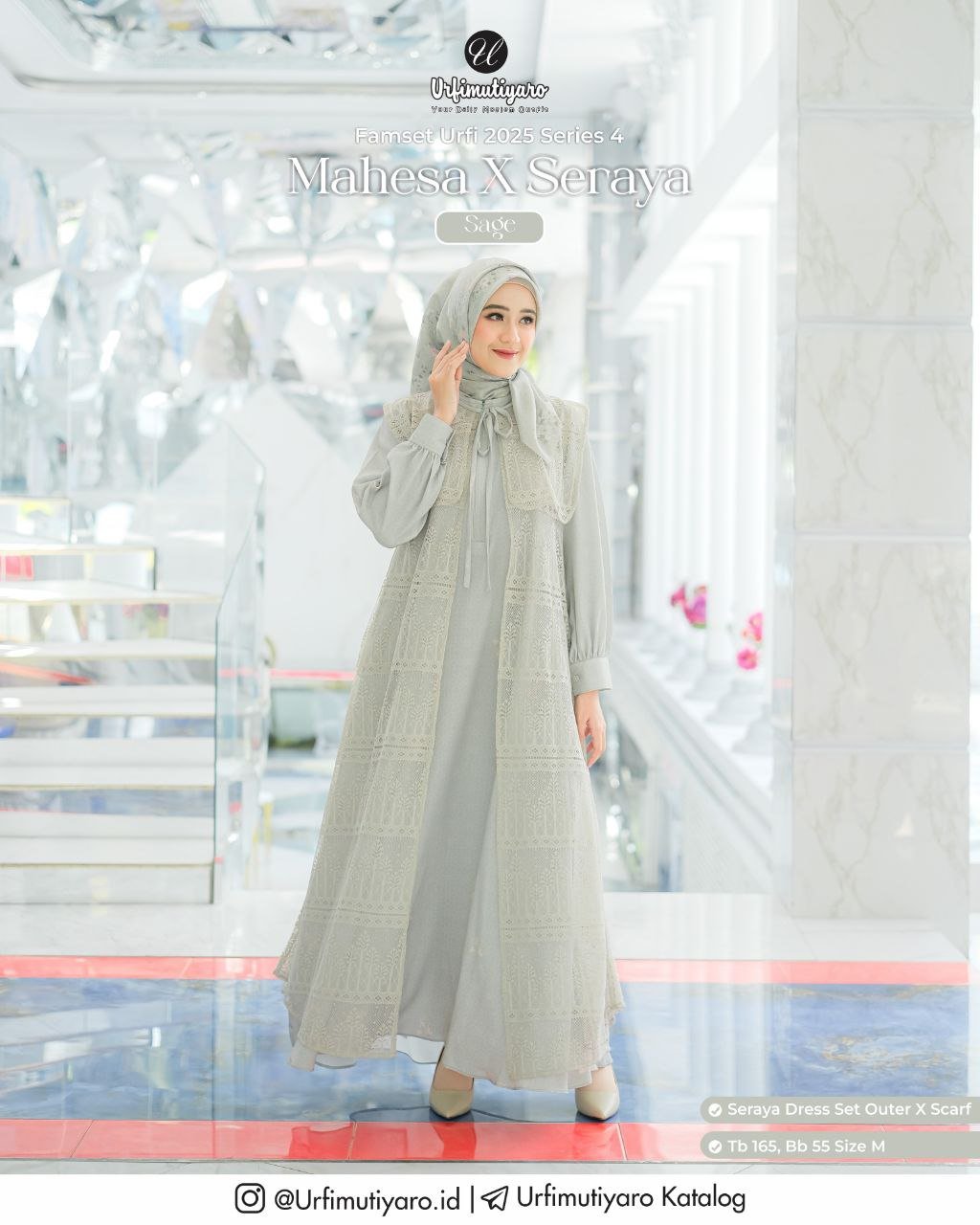 Pada material Seraya Dress dan One Set terdapat pattern geometri serta motif bunga yang diaplikasikan dengan teknik digital printing, sehingga color yang dihasilkan tajam.