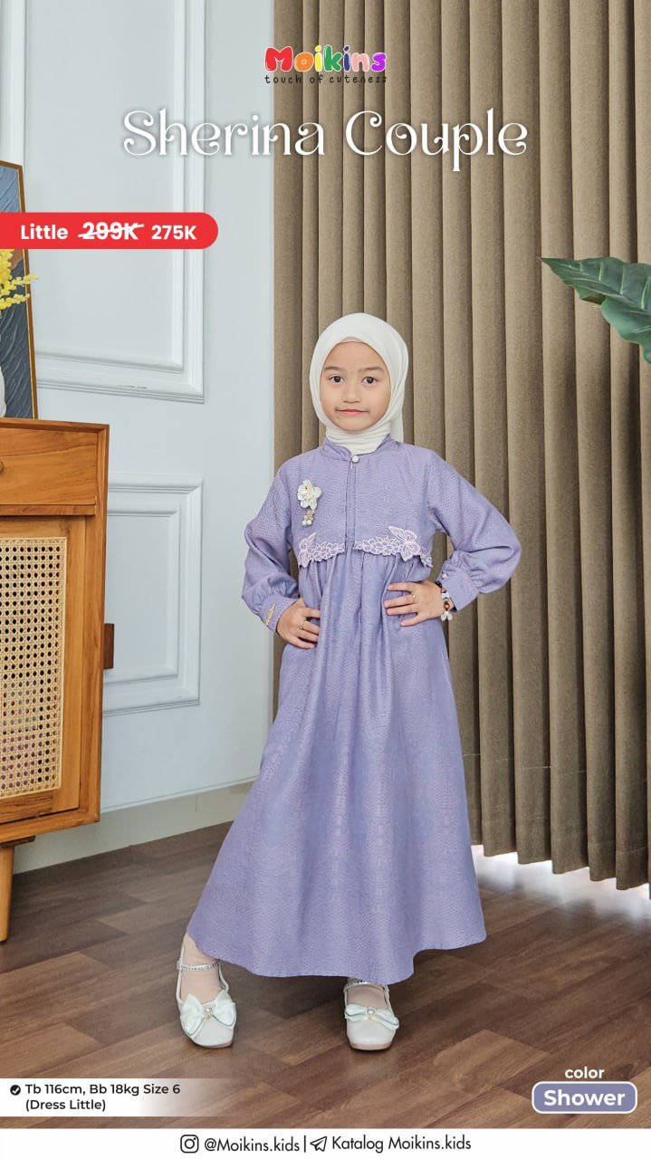 Sherina Dress mom dan little di design twinning, sehingga moms dan nakdis bisa tampil serasi di hari raya nanti maupun di acara spesial lainnya.