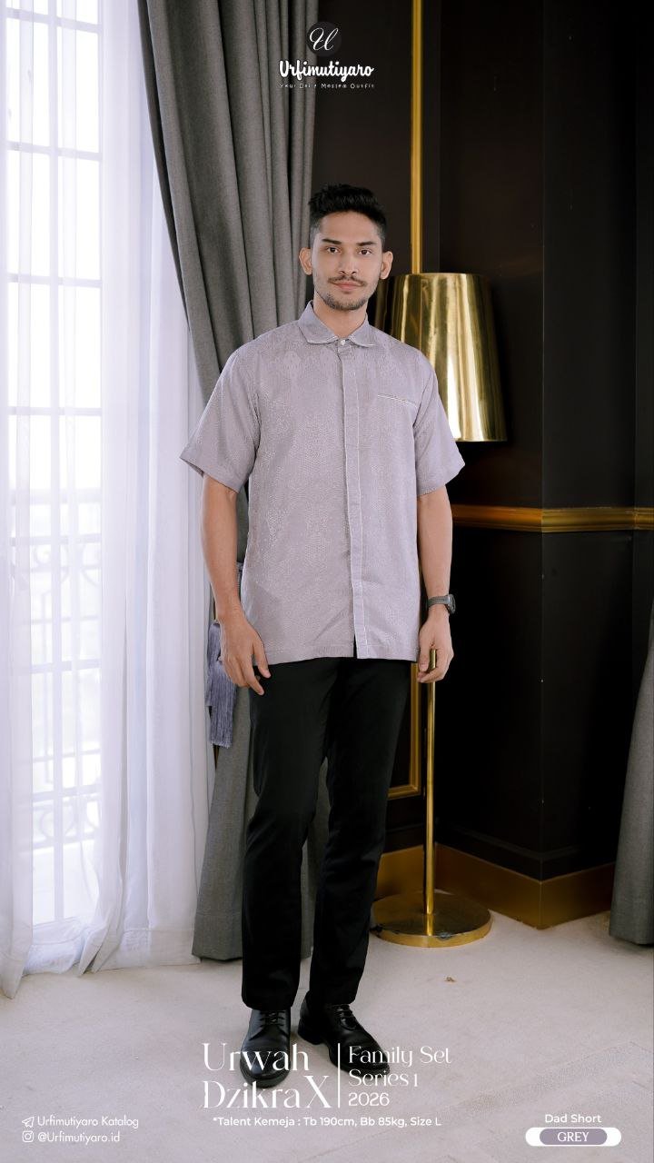 Kemeja Urwah DAD dan LITTLE didesain reguler fit dengan cutting basic sehingga cocok dengan semua postur pria. Tahun ini URFI memilih kemeja (tentunya dengan kerah kemeja) supaya outfit Urwah bisa digunakan untuk ngantor setelah lebaran. Ada highlight bisban silver dan stitching benang smock di area kerah dan plaket depan untuk menyelaraskan tone warna DZIKRA dress. As usual, dan ini yang hanya ada di URFI, terdapat saku sembunyi di bagian kanan-kiri kemeja.