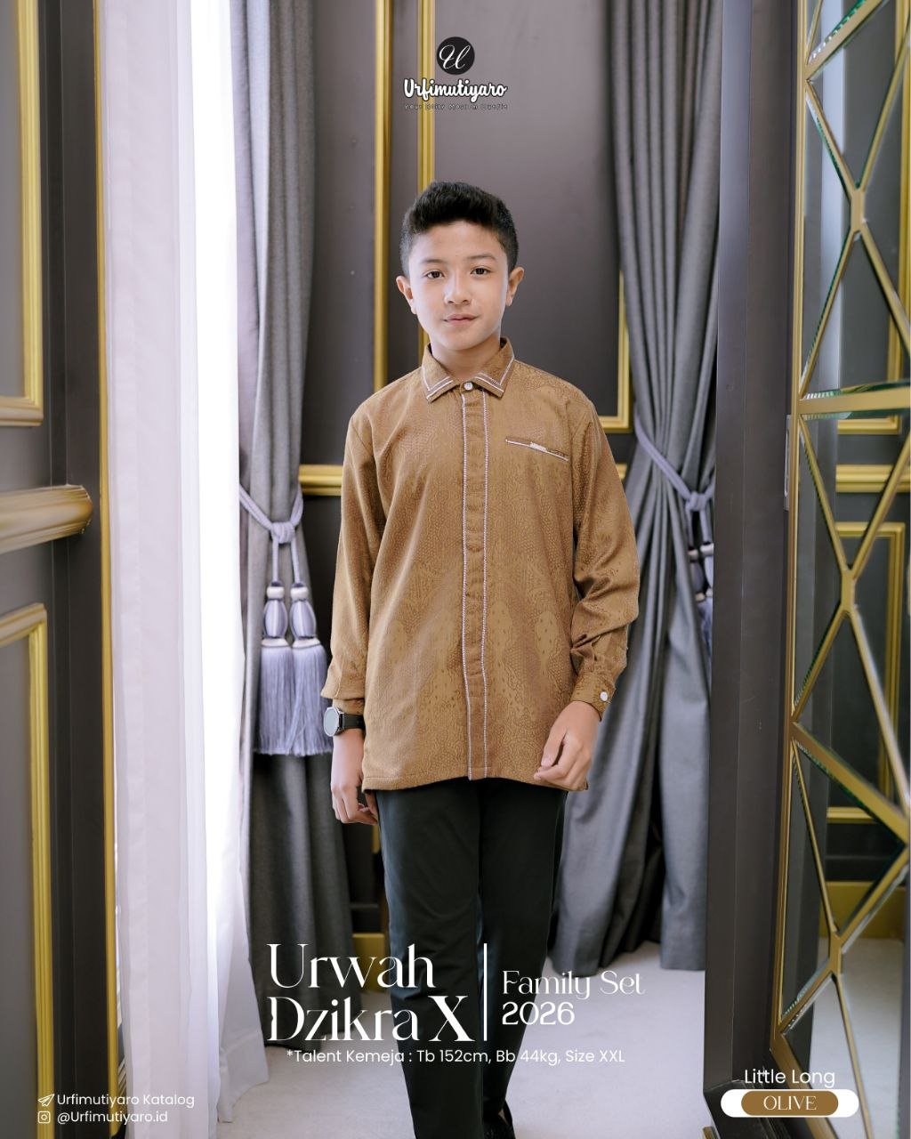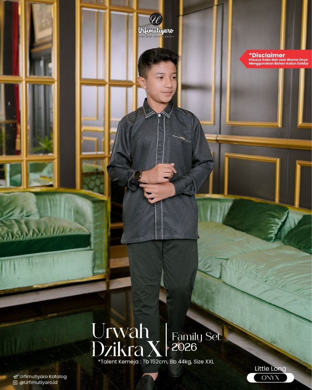 Gold label URFIMUTIYARO kami sematkan di bagian dada. And voila, jangan kaget kalau suami dan nak bujang jadi naik kegantengannya.