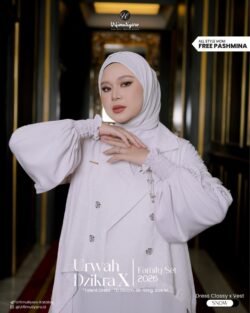Dilengkapi dengan saku tersembunyi di sisi kanan untuk sentuhan fungsional. Manset lengan elastis dan terdapat tali dibagian pinggang kanan kiri untuk adjustable. Zipper di bagian depan sebagai akses opening dress dan busui friendly.