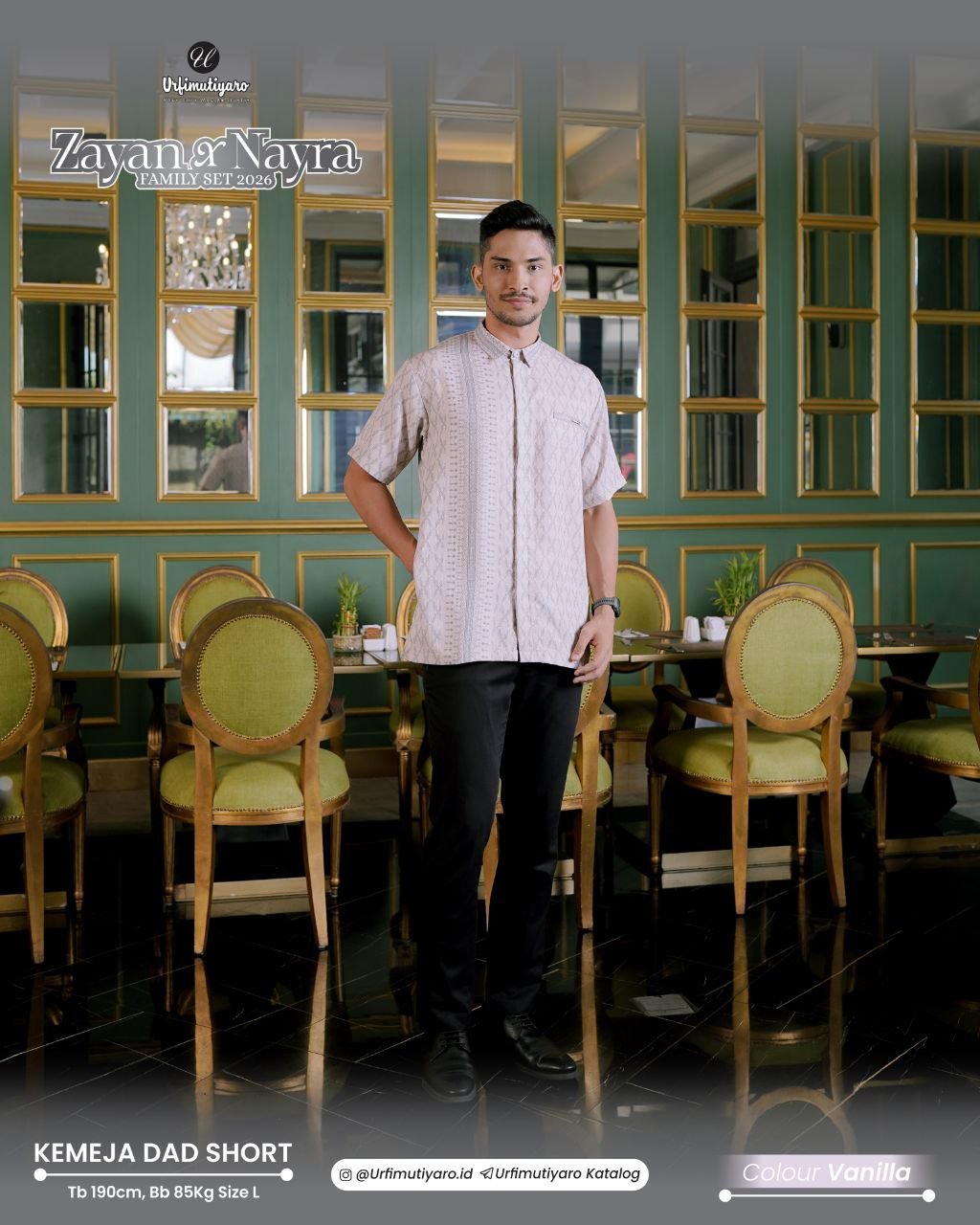 Kemeja Zayan DAD dan LITTLE tampil dengan potongan reguler fit yang basic, cocok untuk segala macam postur pria. Tahun ini, URFI memutuskan untuk menambahkan kerah kemeja agar Kemeja Zayan bisa langsung dipakai ngantor setelah lebaran.