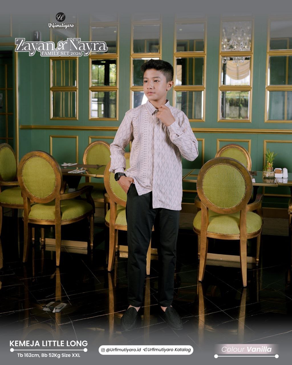 Kemeja Zayan DAD dan LITTLE tampil dengan potongan reguler fit yang basic, cocok untuk segala macam postur pria. Tahun ini, URFI memutuskan untuk menambahkan kerah kemeja agar Kemeja Zayan bisa langsung dipakai ngantor setelah lebaran.